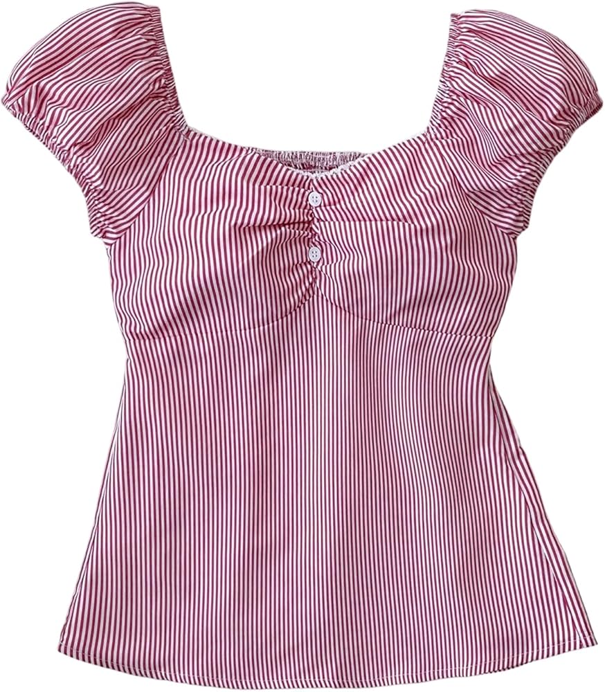 قميص بيبي دول من GORGLITTER للفتيات مصنوع من القماش القطني بأكمام قصيرة ورقبة على شكل قلب مكشكش لطيف in Kuwait