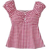 • Gingham top for girls, ruffle peplum blouse, sweetheart neckline shirt