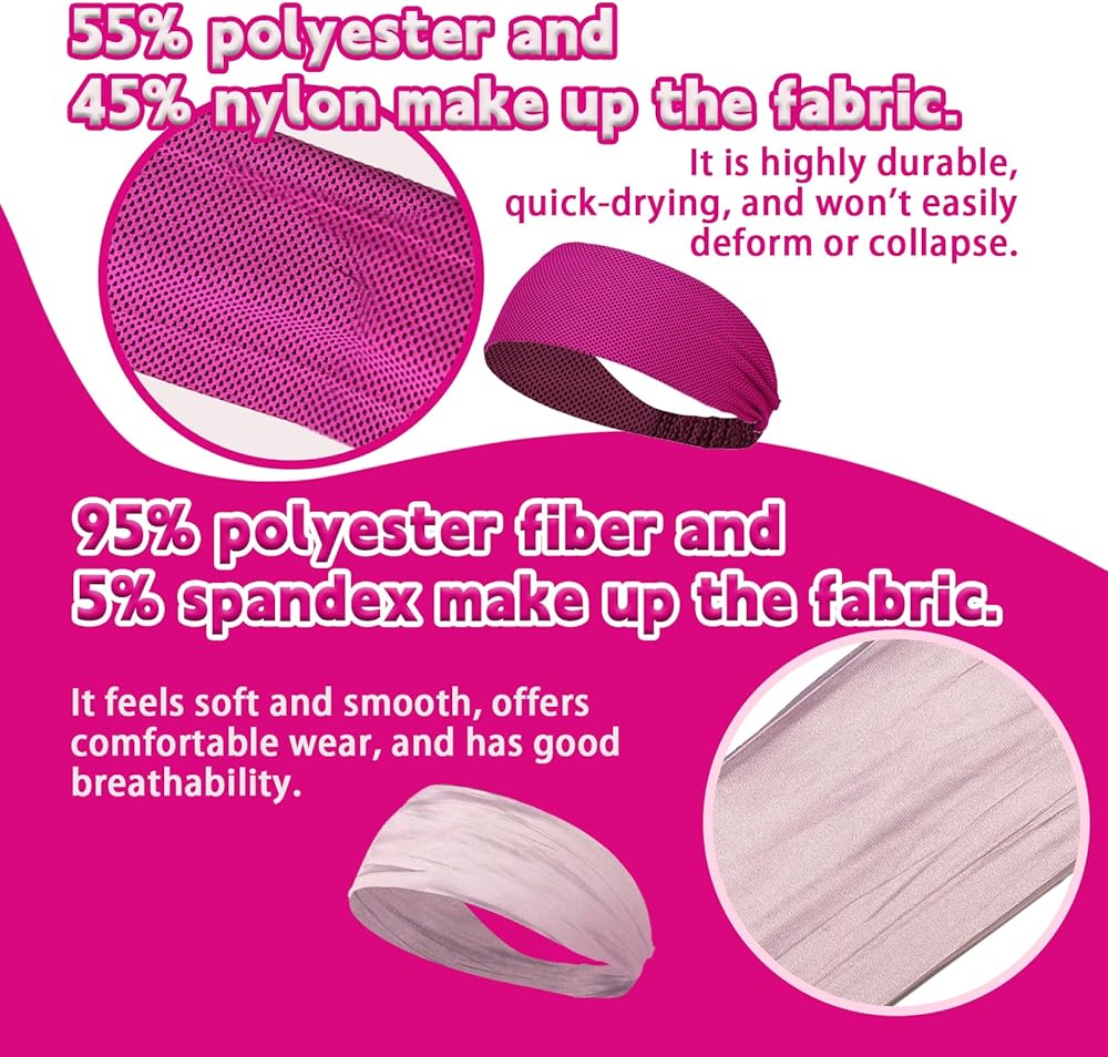 【عصابات رأس ممتازة للنساء】تمتع بأداء متعدد الاستخدامات مع تقنية النسيج المزدوج المبتكرة! يجمع الطراز الواحد بين 55% بوليستر و45% بولي أميد لمتانة فائقة، وخصائص التجفيف السريع، وعصابات رأس قابلة للتمدد للنساء. أما الجزء الآخر فهو مصنوع من 95% بوليستر و5% ألياف لدنة لتوفير راحة ناعمة للغاية وارتداء مسامي. مثالي للتدريب أو الاستخدام اليومي أو النزهات غير الرسمية.