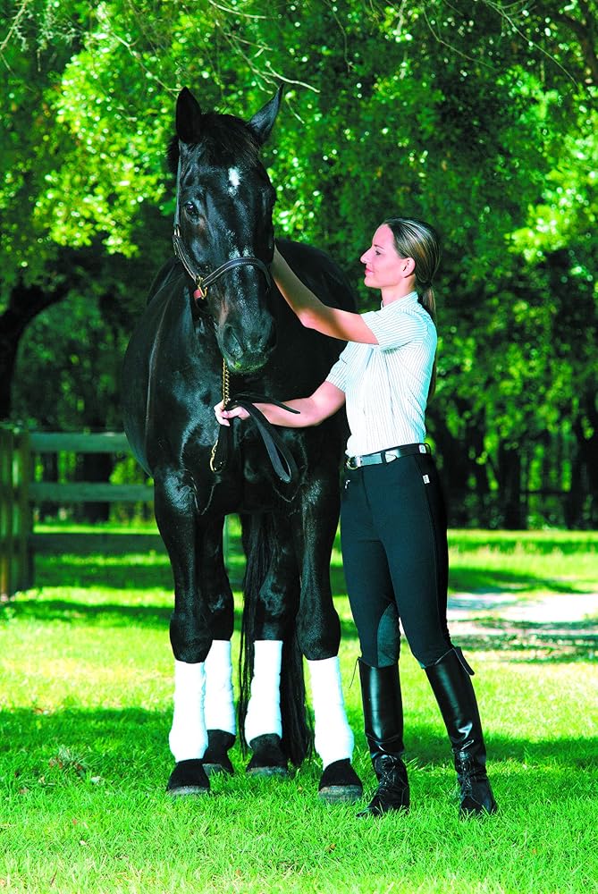 All-Pro German style ribbed fabric has 4 way stretch and provides excellent support and recovery. Made with Devon-Aire's exclusive Dev-Tek moisture wick finish to help maintain a cool and comfortable body temperature. Classic Fit cut provides a traditional look and comfortable fit. Contoured cut is form flattering and comfortable by eliminating bagginess. Plush elastic woven waistband. Reinforced seams and belt loops. Heavy duty YKK brass front zipper and snaps. Elimination of an inside leg seam means no rubbing or chaffing while wearing tall boots. Slant front zippered pocket. Microfiber suede knee patches. Elastic ankle panels eliminate bulky velcro strips with elegant piped trim. Easy care, machine washable. Ladies sizes 24- 34 Reg. & Long.