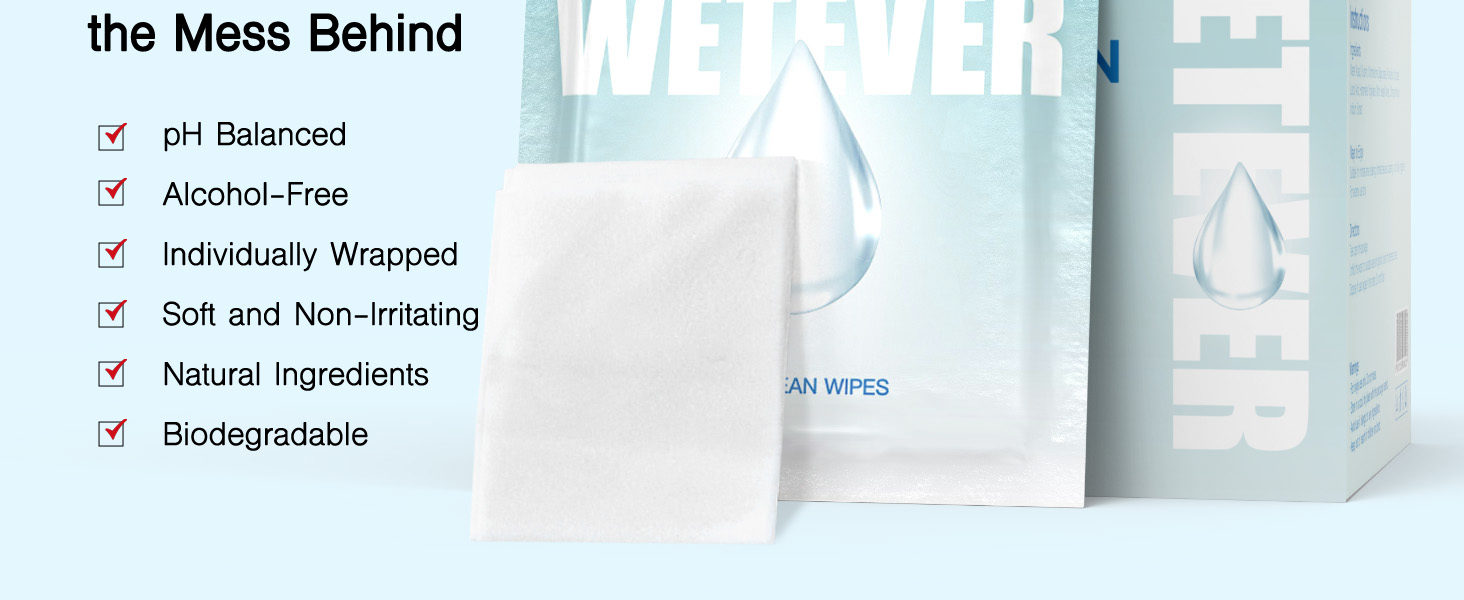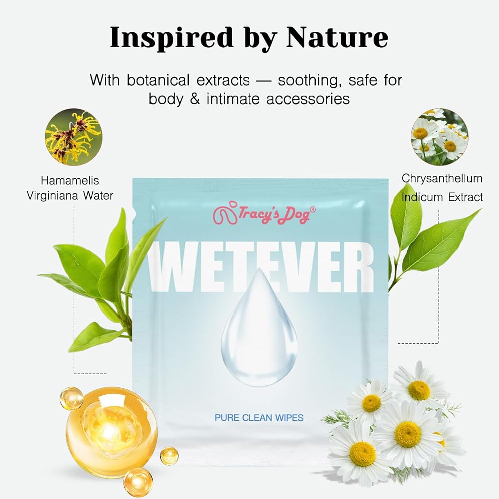 • مصنوعة من مكونات طبيعية: مناديل مبللة بمستخلصات نباتية لطيفة، آمنة للبشرة الحساسة ومناسبة أيضًا لتنظيف الألعاب الحميمة المفضلة لديك.