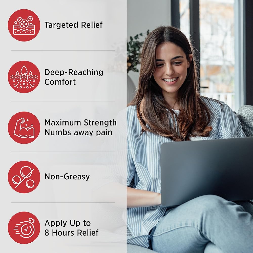 أقصى قدر من القوة - توفر رقع جل الليدوكائين بنسبة 4% راحة سريعة وعميقة ومؤقتة لآلام العضلات في الساق والظهر والورك والمفاصل في الركبة والكتف والرقبة.