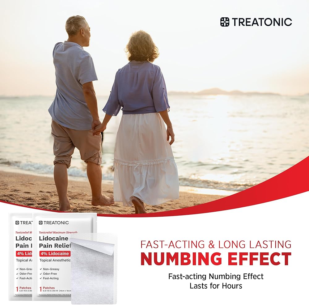 لصقات ليدوكائين ذات القوة القصوى - تحتوي كل لصقة على 4% يدوكائين للمساعدة في تخفيف الألم بشكل مؤقت من آلام العضلات وآلام المفاصل وإجهاد الظهر وعدم الراحة العصبية. يعمل بسرعة ويوفر راحة عميقة ومستهدفة دون تهيج.