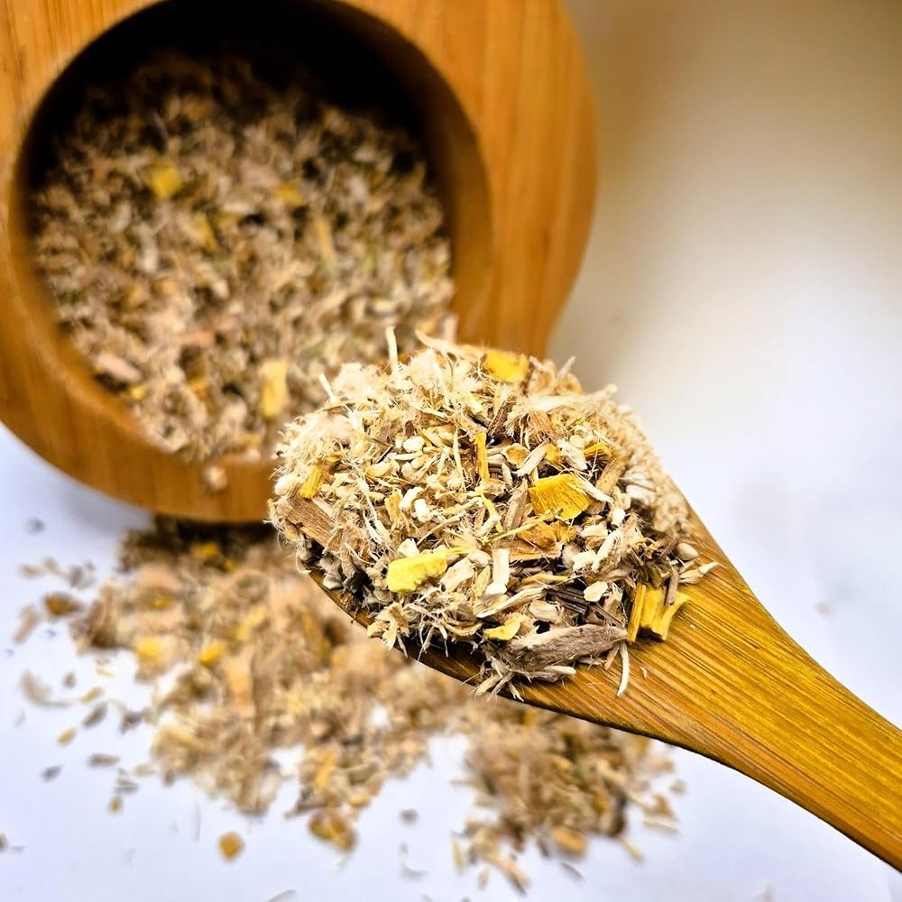 • مجموعات الأعشاب المتآزرة - جذر الخطمي، ولحاء الدردار الزلق، وجذور عرق السوس، وأوراق لسان الحمل تشكل أساسًا ناعمًا وغنيًا بالصمغ غالبًا ما يتم تقديره لملمسه الطبيعي المعتدل ونكهته المتوازنة. يكمل جذر شاتافاري وبذور الشمر التركيبة، مما يضيف عمقًا منعشًا.