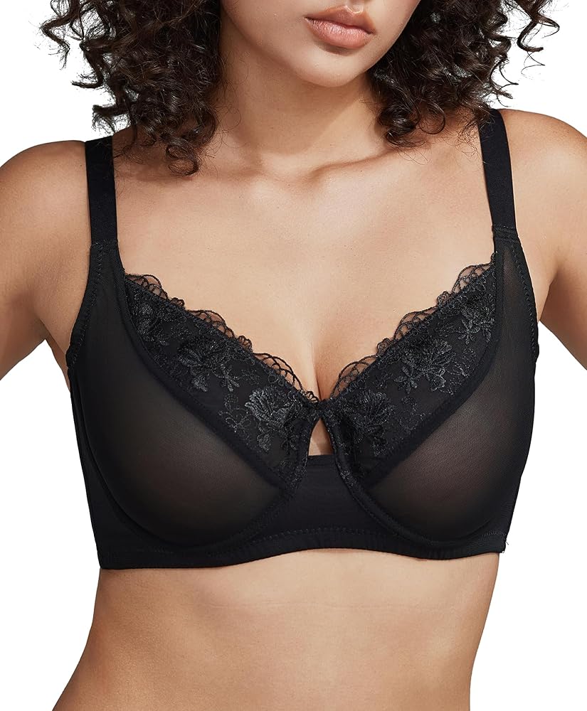 حمالات صدر دانتيل بمقاس كبير: مصممة خصيصًا لتكون حمالة صدر دانتيل بمقاس كبير للحصول على جسم أكثر امتلاءً. يتميز بأشرطة ثابتة وأوسع وبنية جانبية للحصول على دعم جانبي فائق، يكمله كوب من الدانتيل الشبكي الشفاف لتوفير شكل رائع ومريح وأمان طوال اليوم.
