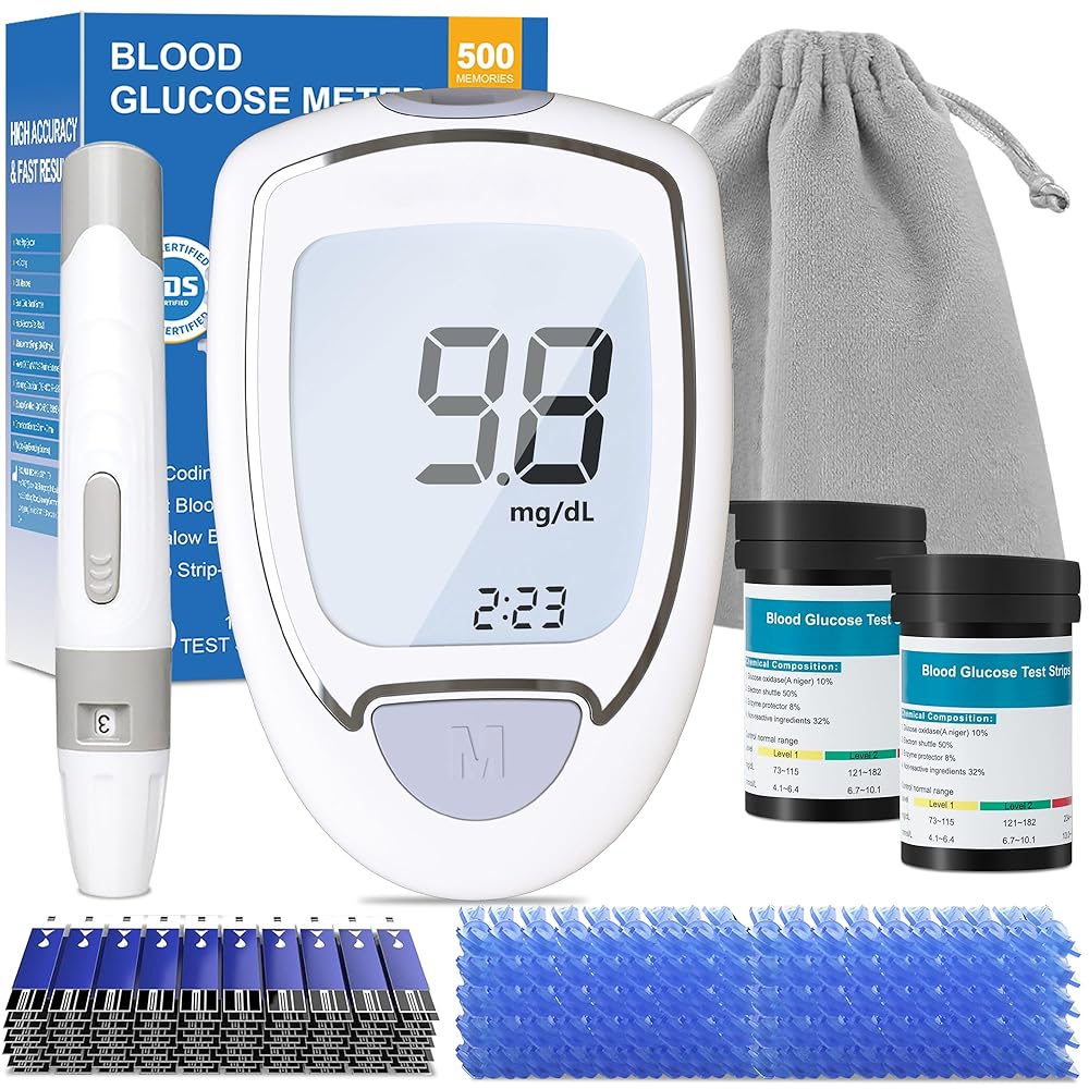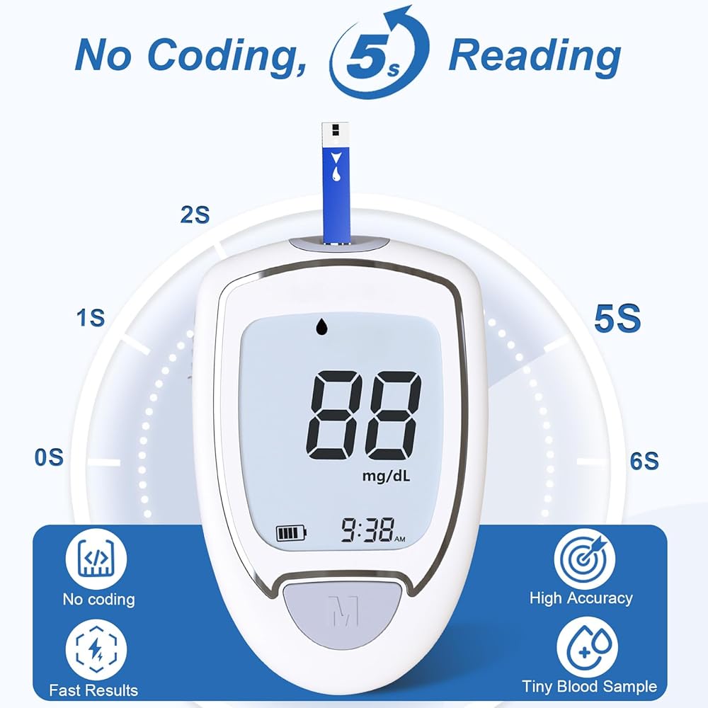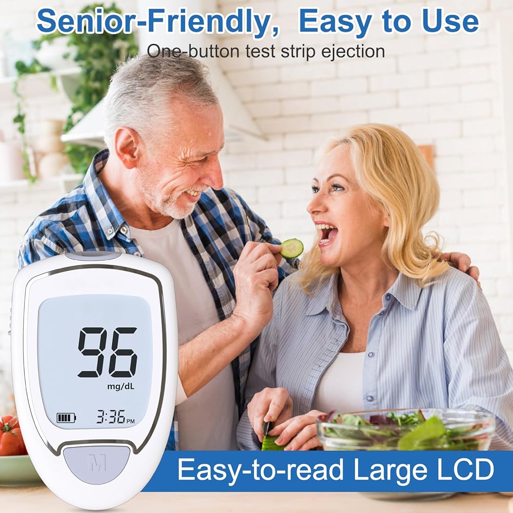 Blood Glucose Monitor, Glucometer Kit with 100 Strips and Lancets, Diabetic Testing Kit with Auto Eject, No Coding, Large Display for Seniors, Blood Sugar Testing Kit for Travel & Home Use