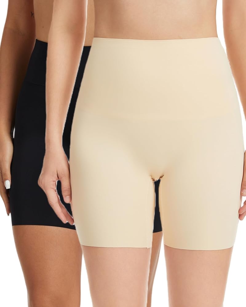 مادة مسامية ومريحة لملابس داخلية تحت الفساتين: شورت تبريد عالي الخصر للنساء تحت الفساتين مصنوع من 80% بولي أميد 20% إيلاستين، شورت سباندكس للسيدات تحت الفستان بنسيج ناعم من الحرير الجليدي، ملمس ناعم مسامي ومريح ويمنحك متعة حريرية وناعمة ورقيقة، تصميم داخلي آمن ممتد بين الساقين وسروال قصير مضاد للاحتكاك للنساء يجعلك تشعر بعدم الاحتكاك وتشعر بالحرية طوال اليوم