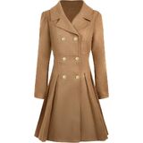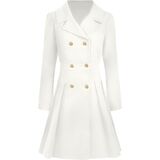 UNIQUE FLATTERING DESIGN:Elevate your style with this uniquely designed long coat women will love. It features a defined waist and an elegant A-line swing coat silhouette that creates a dramatically flattering figure. Key details include a sophisticated lapel collar, a double breasted design, and two hidden pockets, blending elegance with functionality. Crafted from comfortable, lined fabric, this mid-length trench coat offers all-day comfort and warmth.
