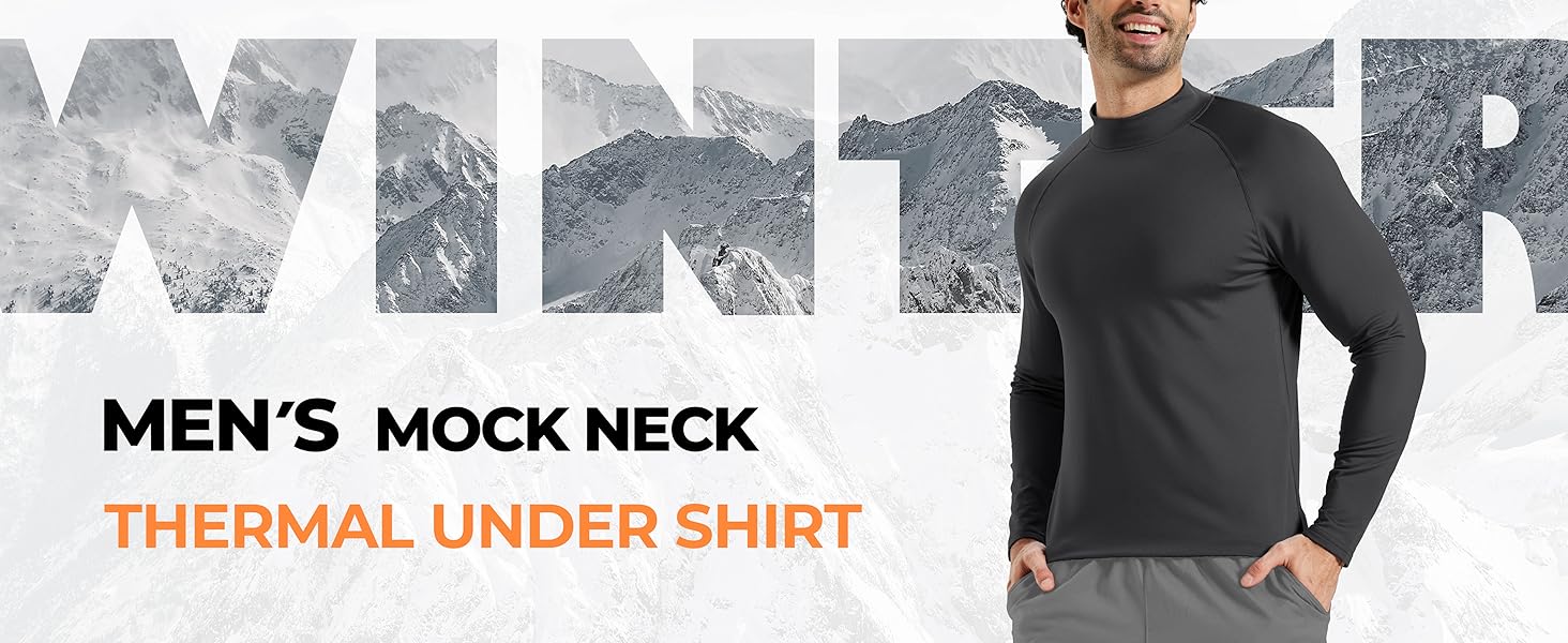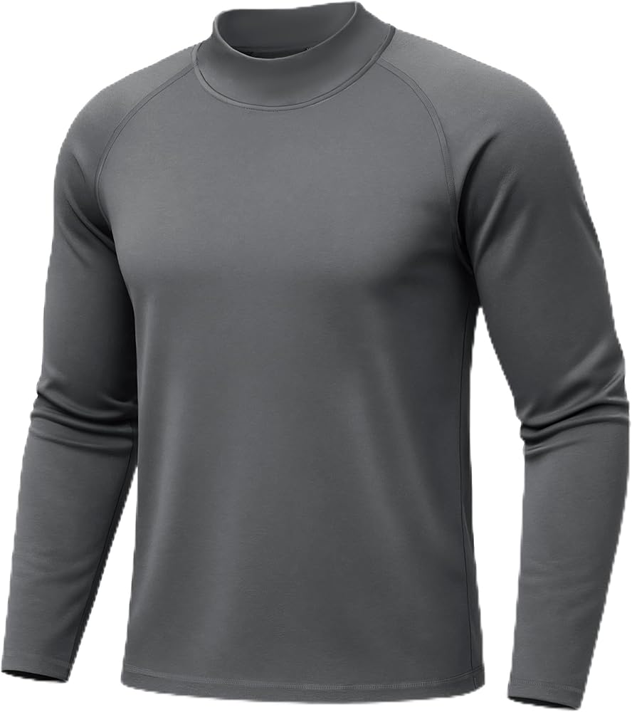 قميص حراري رجالي بأكمام طويلة ورقبة وهمية مبطنة بالصوف، قميص داخلي رياضي بطبقة أساسية دافئة للرياضات في الطقس البارد in Kuwait