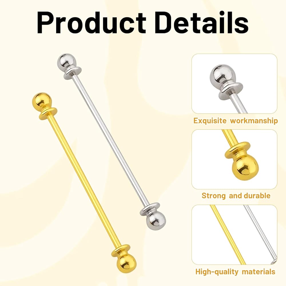 2 Pcs Collar Pins for Men, Tie Pins for Men Dress Shirts, Gold Tie Bar, Shirt Pins for Formal Attire, Collar Clips for Professional Look Firmly Fit: These tie pins for men ensure your dress shirt collar stays in place all day; The sturdy construction provides durability and a polished look Classic Design: Featuring a sleek tie pins style, these collar pins for men complement formal attire; The minimalist design adds sophistication without overpowering your outfit Versatile Use: Ideal for business meetings or special occasions, these collar bars for men dress shirts work with various collar types; The discreet size maintains professionalism while securing your collar Easy Application: Simply slide these collar tabs for men's dress shirts between collar points; The smooth surface prevents snagging on delicate shirt fabrics Thoughtful Gift Set: This 2-pack of metal collar stays for men makes a practical present for professionals; The elegant collar clips elevate everyday workwear with refined detailing
