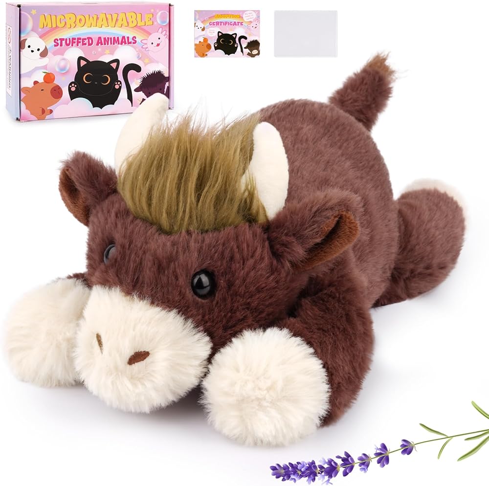 Simple & Effective Soothing: Experience easy comfort! This heatable stuffed animals is filled with natural flaxseed and lavender. For warm therapy, heat for 60 sec (850W-1000W) or 90 sec (600W-800W) to ease period cramps and muscle tension