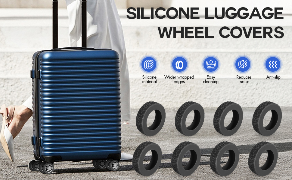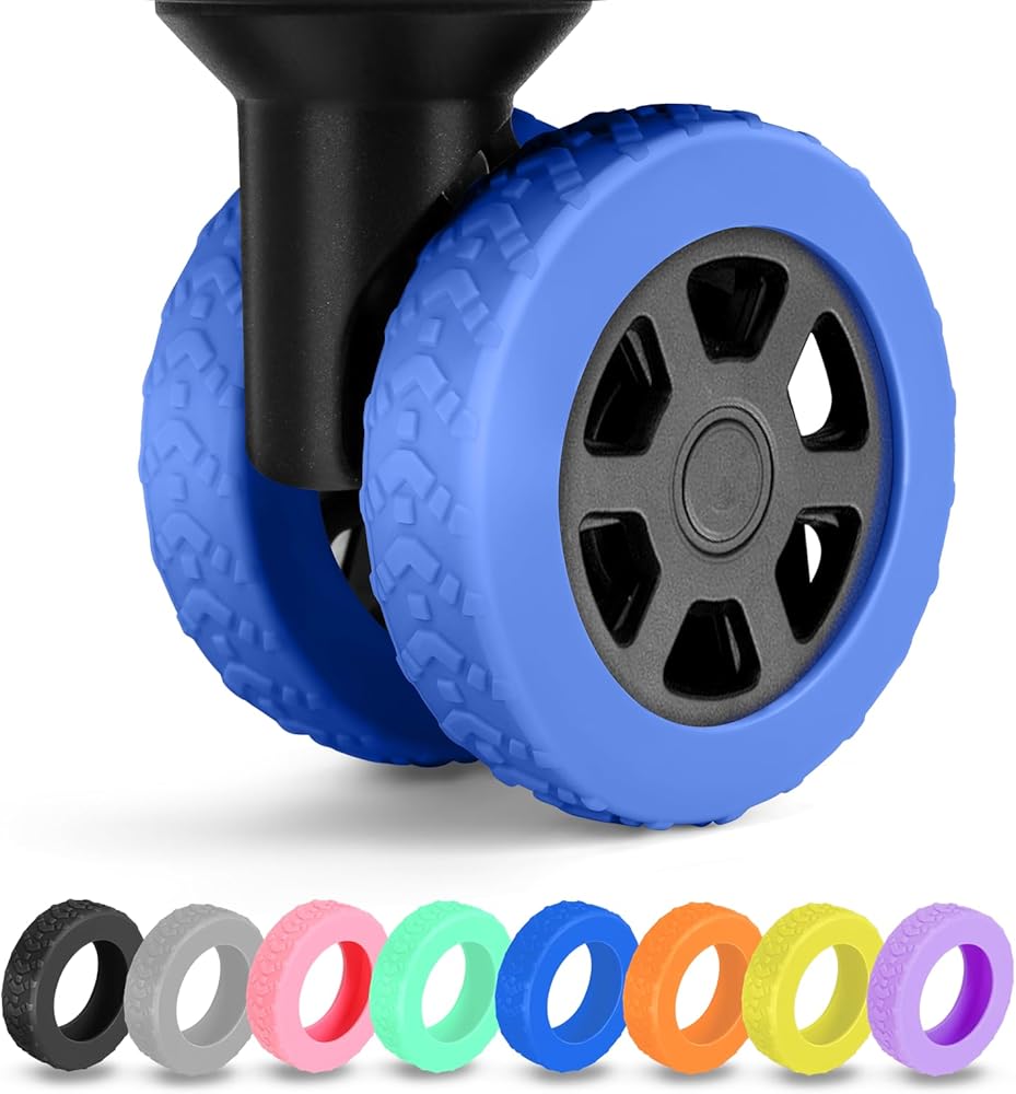 • 2. انزلق في صمت، وتخلص من الضوضاء المزعجة - هل سئمت من هذا الصوت العالي الذي يعلن عن وصولك إلى كل مكان تذهب إليه؟ تم تصميم أغطية عجلات الأمتعة الخاصة بنا لتقليل الضوضاء. يحول السيليكون الناعم الممتص للصدمات رحلتك الصاخبة إلى انزلاق سلس وصامت. يمكنك التنقل في محطات المطار الهادئة، وممرات الفنادق، ومناطق المغادرة في الصباح الباكر بخفة ورشاقة. اقلب الأنظار للأسباب الصحيحة، وليس للمضرب!
