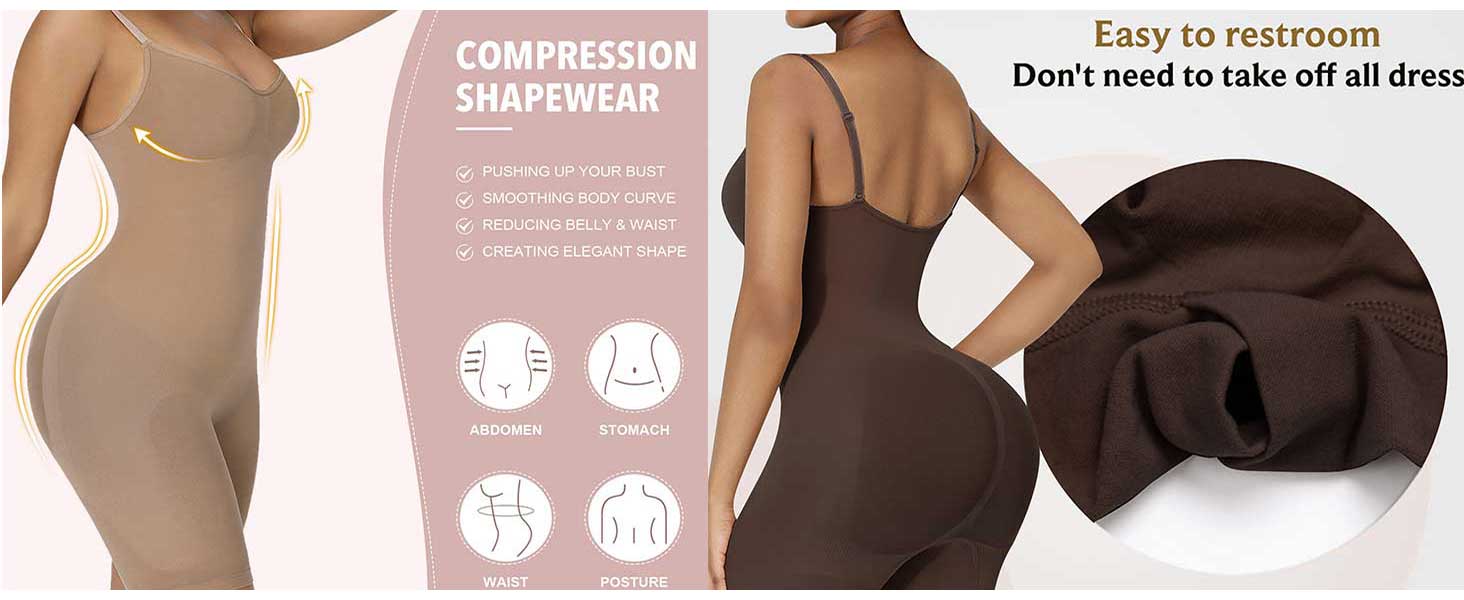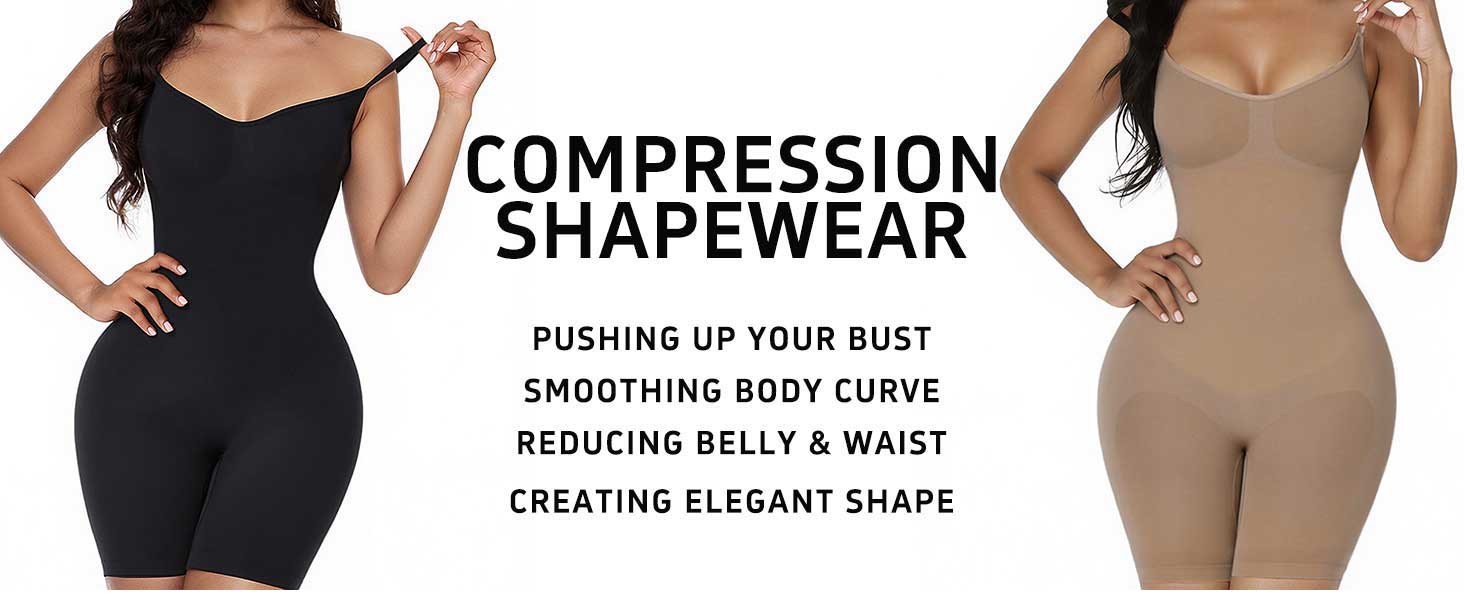 بدلة للجسم للسيدات مع أشرطة، للتحكم في البطن في منتصف الفخذ لكامل الجسم، بدلة تنحيف مضغوطة من يوتار