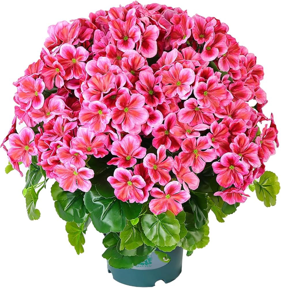【UV Resistant & Durable Materials】Crafted from high-quality silk flowers and weather-resistant plastic leaves, these faux geraniums are built to last. They won't fade under the sun, making them ideal for long-term outdoor or indoor use.