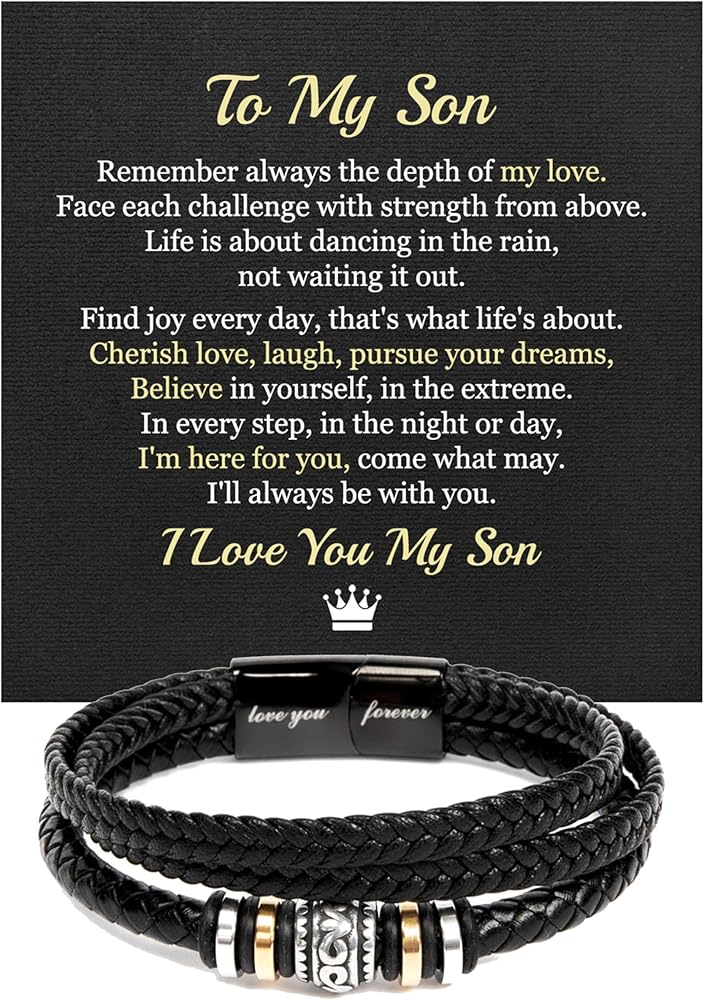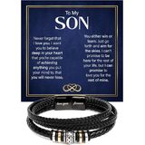 سوار To My Son هدية من الأم والأب، سوار جلدي مضفر أسود للرجال، هدايا للابن، التخرج، عيد الميلاد وعيد الفصح in Kuwait