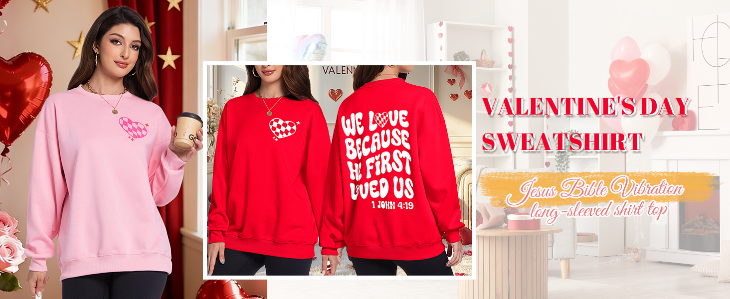 Match: Versatile and easy to style, this sweatshirt can be dressed up or down—pair it with jeans for a casual look or with accessories for a more polished outfit. It's ideal for everyday wear and adds a romantic touch to Valentine's celebrations