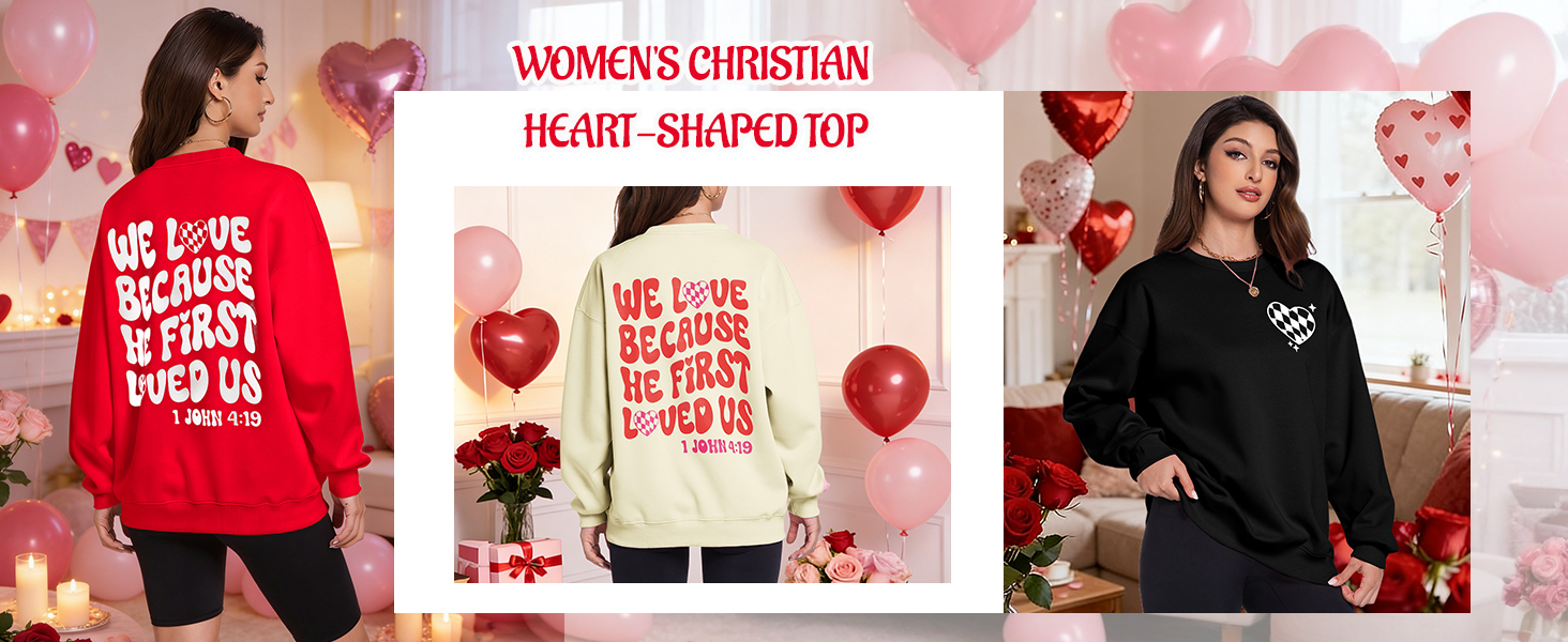 Material & Design: This women's sweatshirt is crafted from a premium cotton blend, offering a soft, lightweight, and breathable feel for all-day comfort. Its design seamlessly blends Christian symbolism with Valentine's charm, making it a perfect choice for daily wear during the season of love