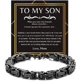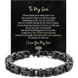 يتميز هذا السوار الرجالي مقاس 8 بوصات بمشبك آمن، وقابل للتعديل ليناسب الراحة - يتميز سوار to my son بتصميم قابل للتعديل مع مشبك آمن، مما يجعله هدية مجوهرات مريحة للابن ومناسبة لمختلف أحجام المعصم.