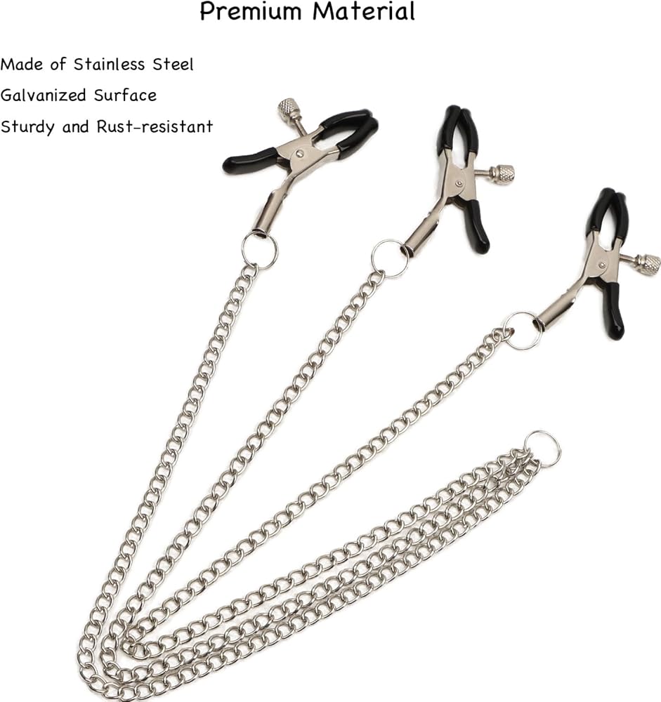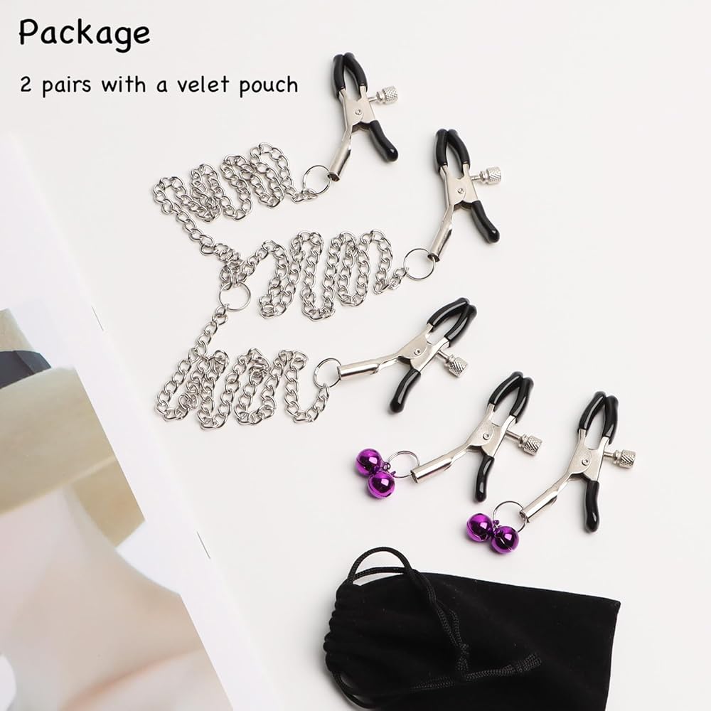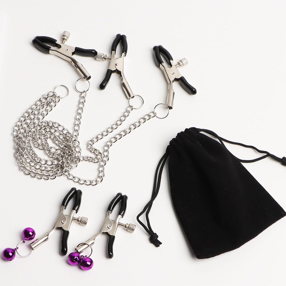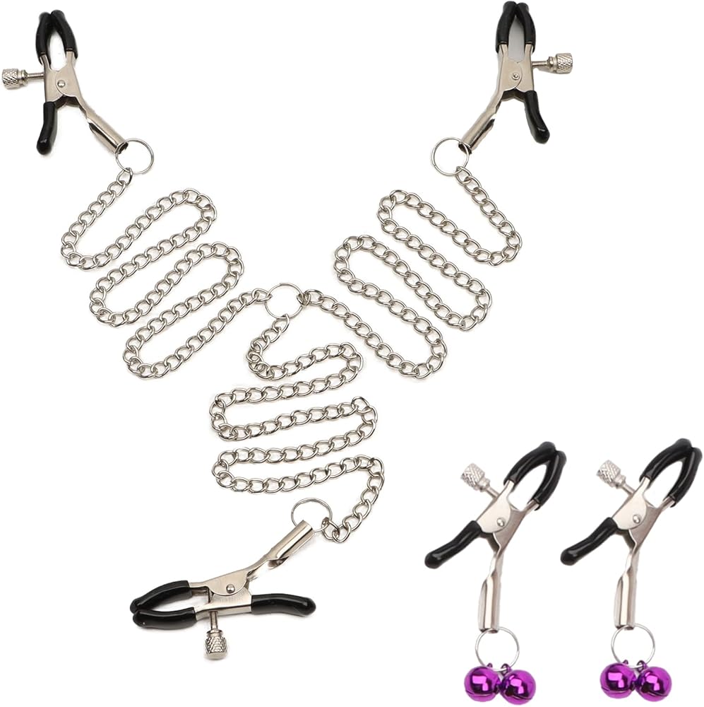مجوهرات الجسم غير ثقب الحلمة المشابك مع سلسلة قلادة الفولاذ المقاوم للصدأ الجسم سلسلة وهمية الجسم مجوهرات حلقة الحلمة كليب للعب الكبار للنساء هدية - Sliver_Purple