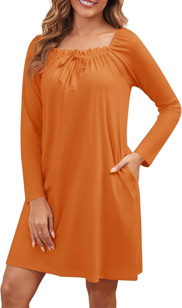 • السمات: ثوب نوم بأكمام طويلة، وجيبين جانبيين، وخط رقبة مكشكش مع ربطة عنق صناعية، لون ثابت، فساتين نوم نسائية، فستان منزلي، فساتين لملابس نوم نسائية، هذا الفستان القطني متعدد الاستخدامات بما يكفي للنوم أو ارتداؤه كملابس خفيفة وسهلة