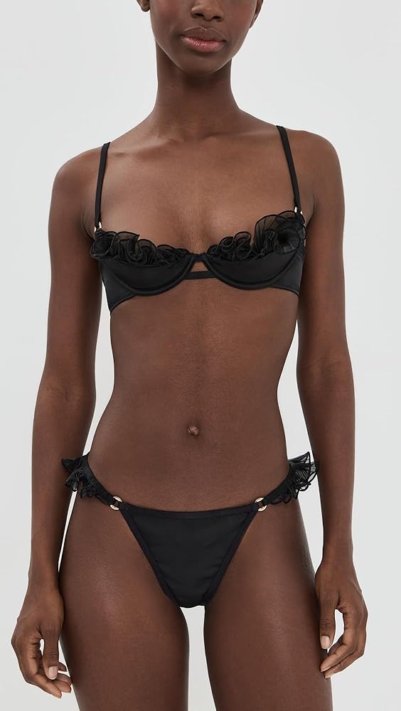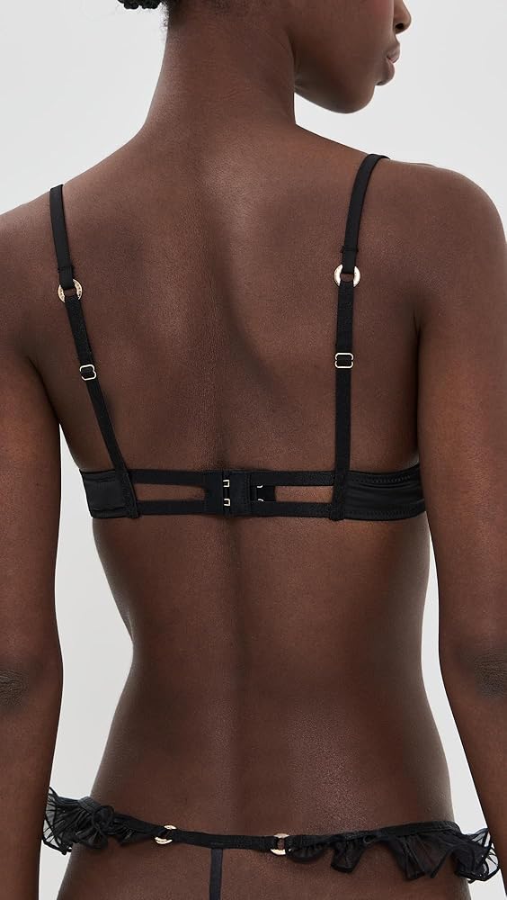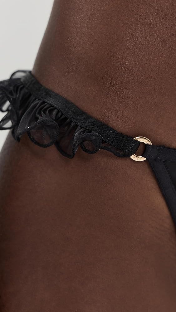 - تفاصيل مكشكشة منظمة على الأشرطة، وتفاصيل أجزاء معدنية ذهبية اللون