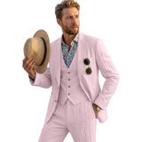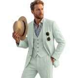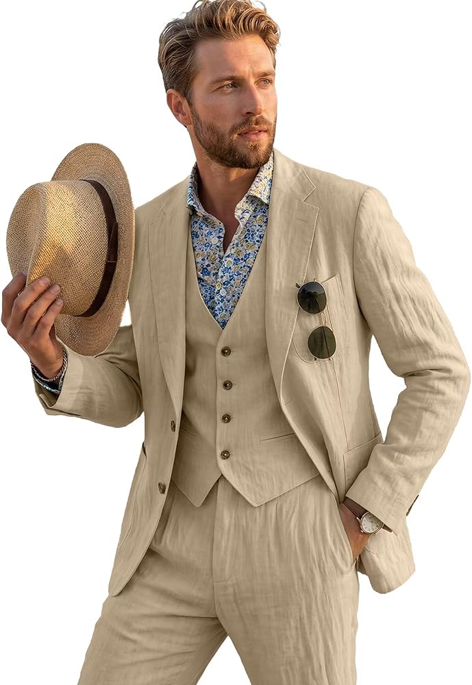 بدلة رجالي من الكتان مكونة من 3 قطع بقصة ضيقة وخفيفة الوزن من الكتان أطقم سترات وسترة وسراويل صيفية غير رسمية للسفر للرجال in Kuwait