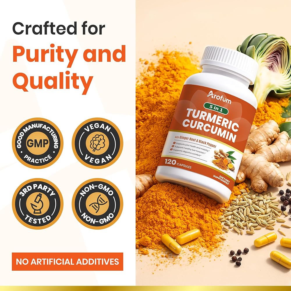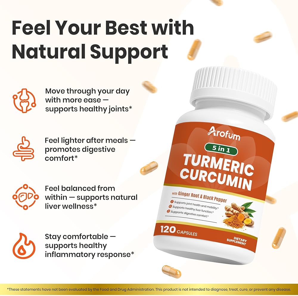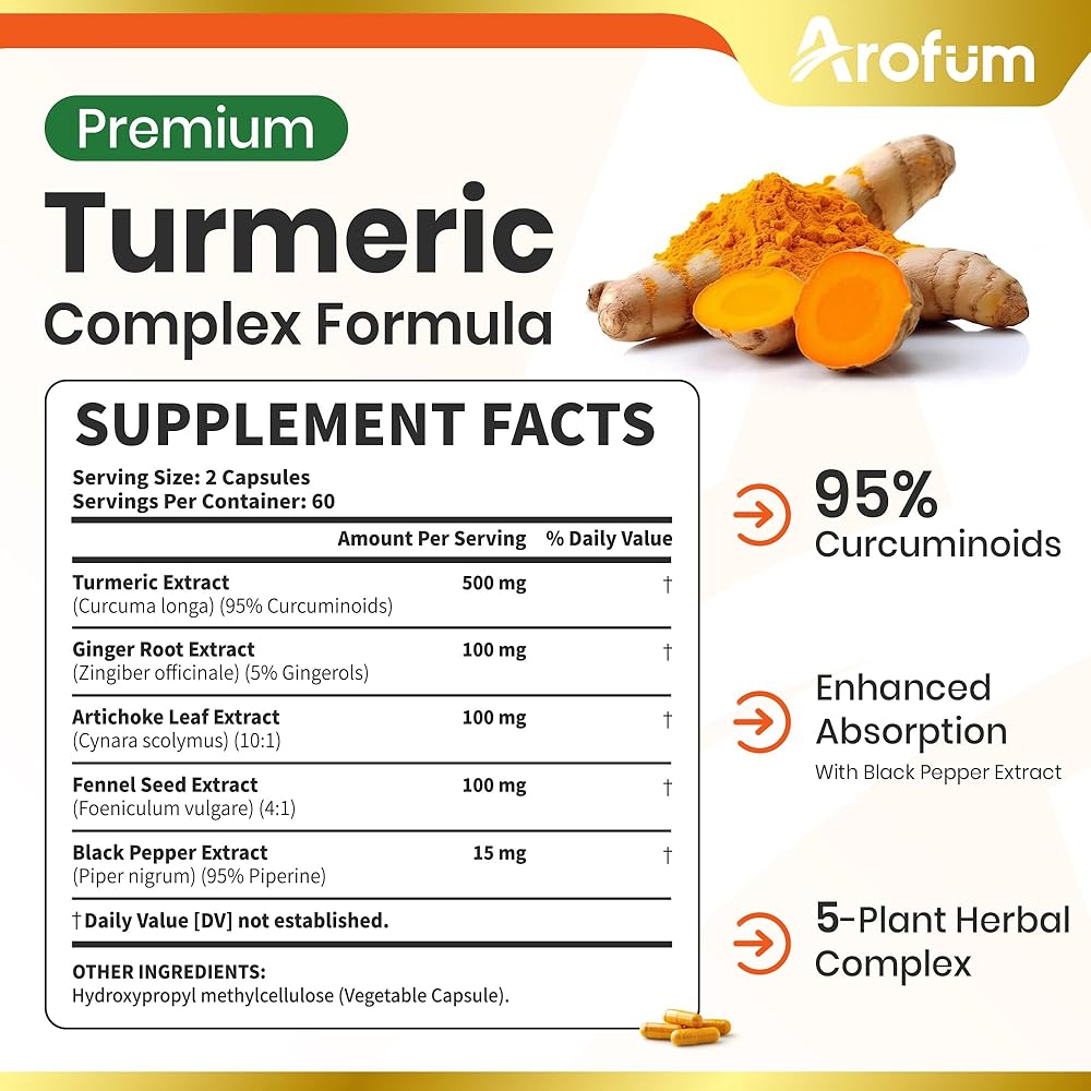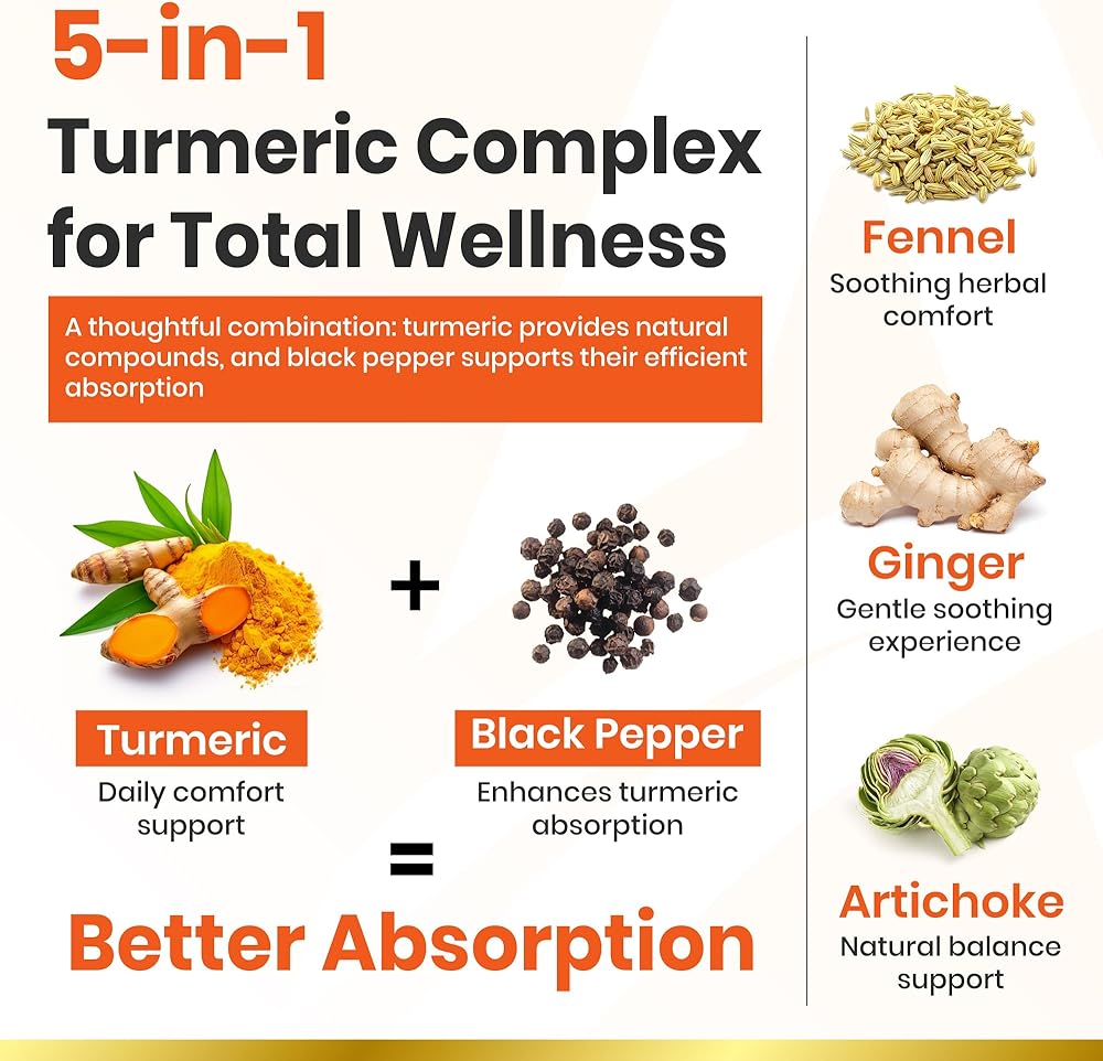 Advanced 5-in-1 Botanical Blend A plant-based combination of turmeric extract (500 mg), ginger, artichoke, fennel, and black pepper—grounded in long-standing herbal traditions for daily use