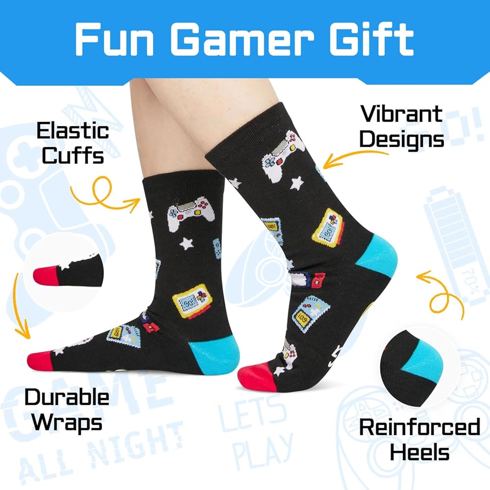 هدايا اللاعبين للرجال - حشوات جوارب الألعاب للأولاد المراهقين، جوارب ألعاب الفيديو للبالغين مع سلسلة مفاتيح