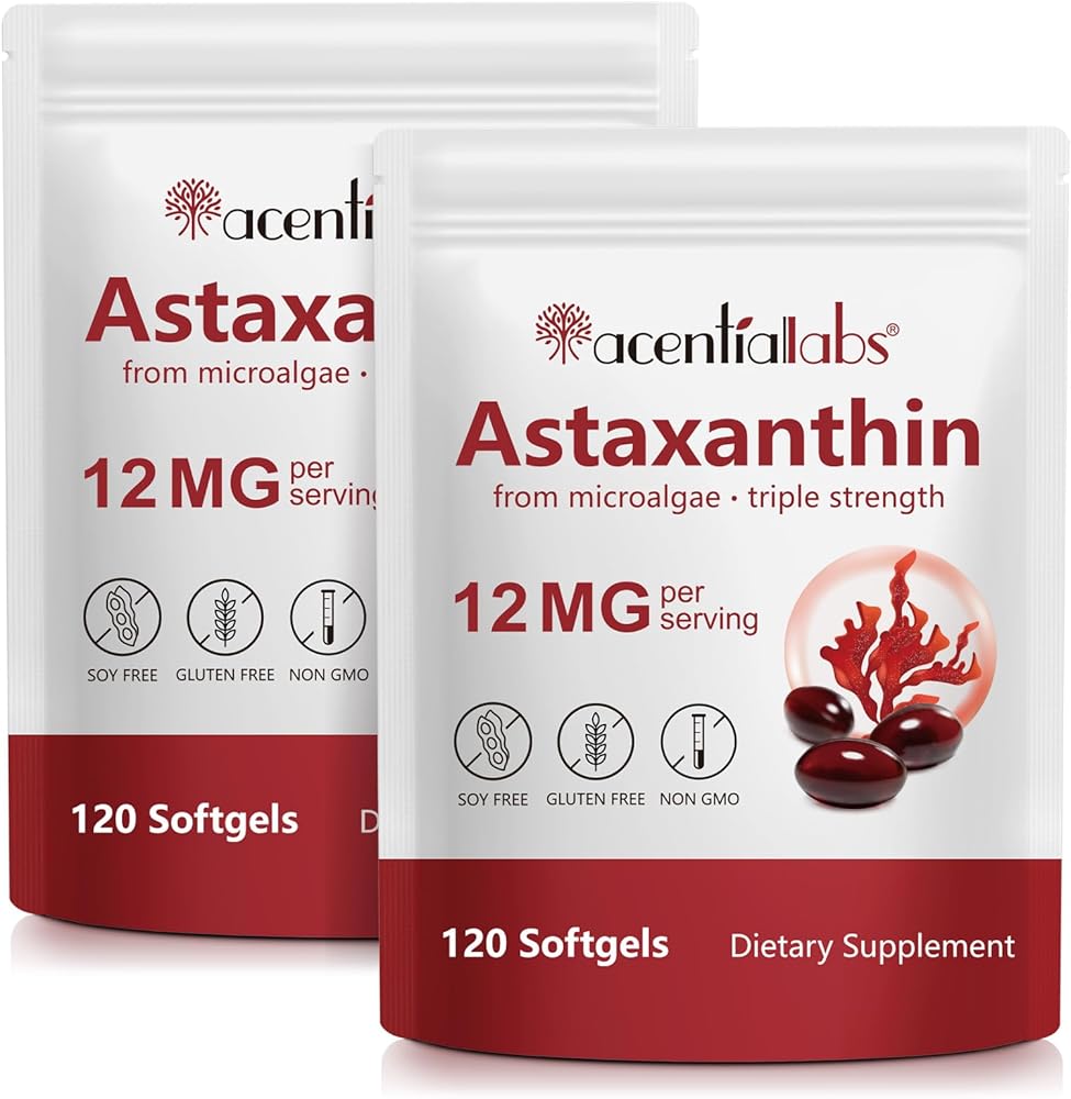 High Potency Strength: Each softgel delivers 12mg of astaxanthin—three times stronger than standard 4mg formulas—for more effective antioxidant support.