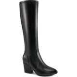 المواد: الجزء العلوي من الحذاء الأسود مصنوع من مادة الجلد الصناعي الفاخر، مما يوفر ملمسًا ناعمًا وأنيقًا. تتميز الأحذية الطويلة حتى الركبة للنساء ببطانة مريحة، مما يجعلها مريحة للارتداء طوال اليوم. النعل المطاطي غير قابل للانزلاق ومقاوم للتآكل
