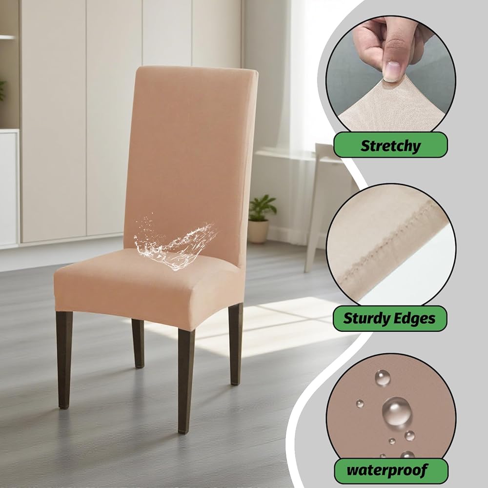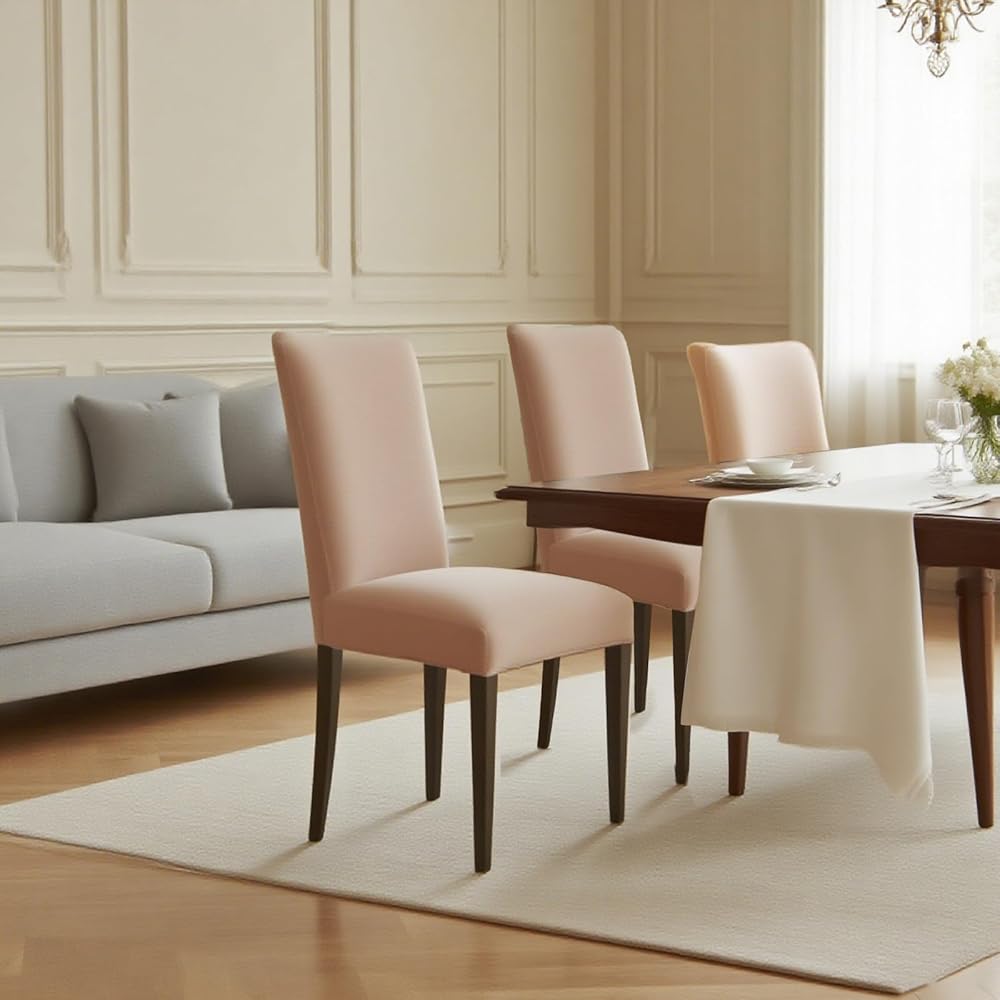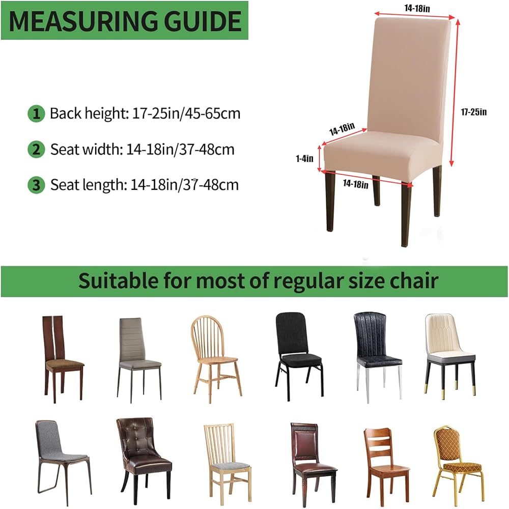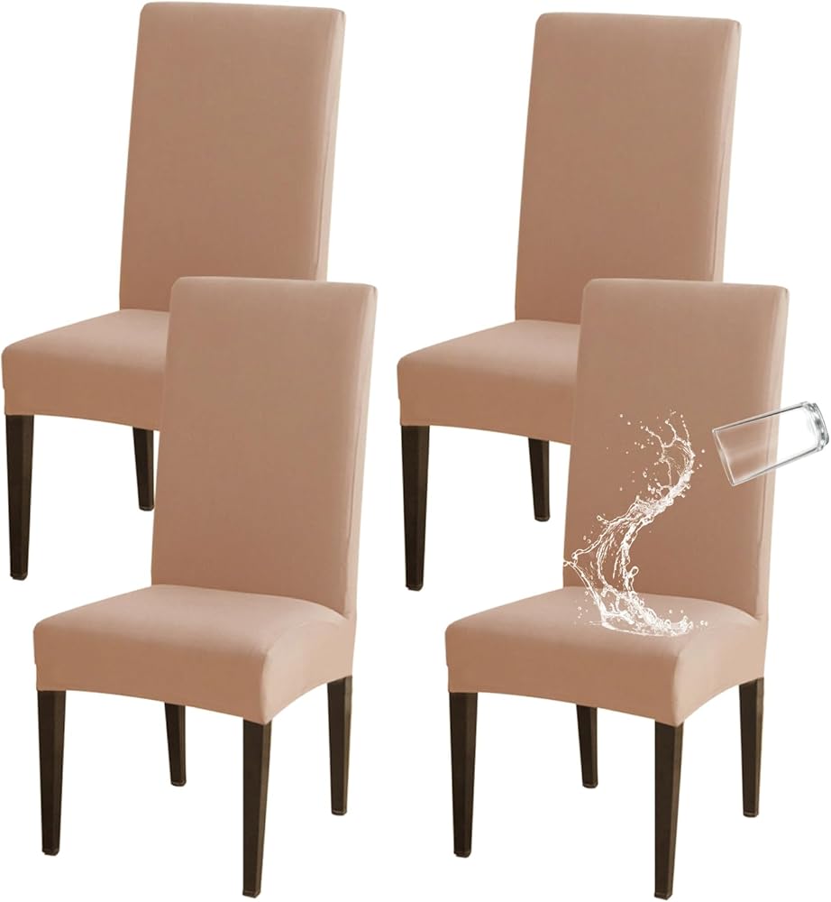 Waterproof Dining Room Chair Covers: PWQEIONC dining chair covers set of 4 are made of water-repellent fabric, which can effectively prevent the penetration of liquids. These chair slipcovers guard against scratches, food stains, and daily wear, making them ideal for households with kids and pets. While not fully waterproof, they provide strong defense and are easy to wipe clean