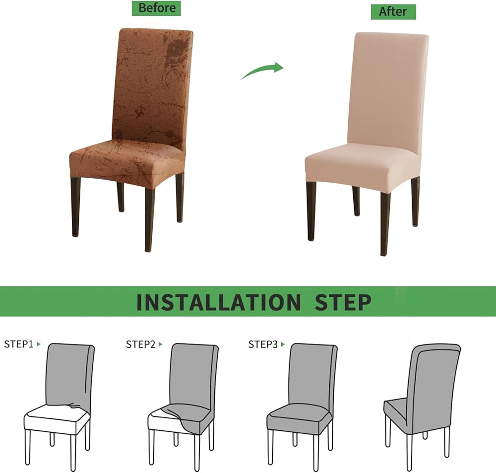 Transform Your Old Chairs: The dining room chair covers set of 4 can refresh your old chairs in a most affordable way, extend the service life of the chairs. These dining room chair seat covers instantly upgrade your space - whether it's a modern dining room, rustic kitchen, or event venue. More cost-effective than replacing chairs, while letting you experiment with new styles