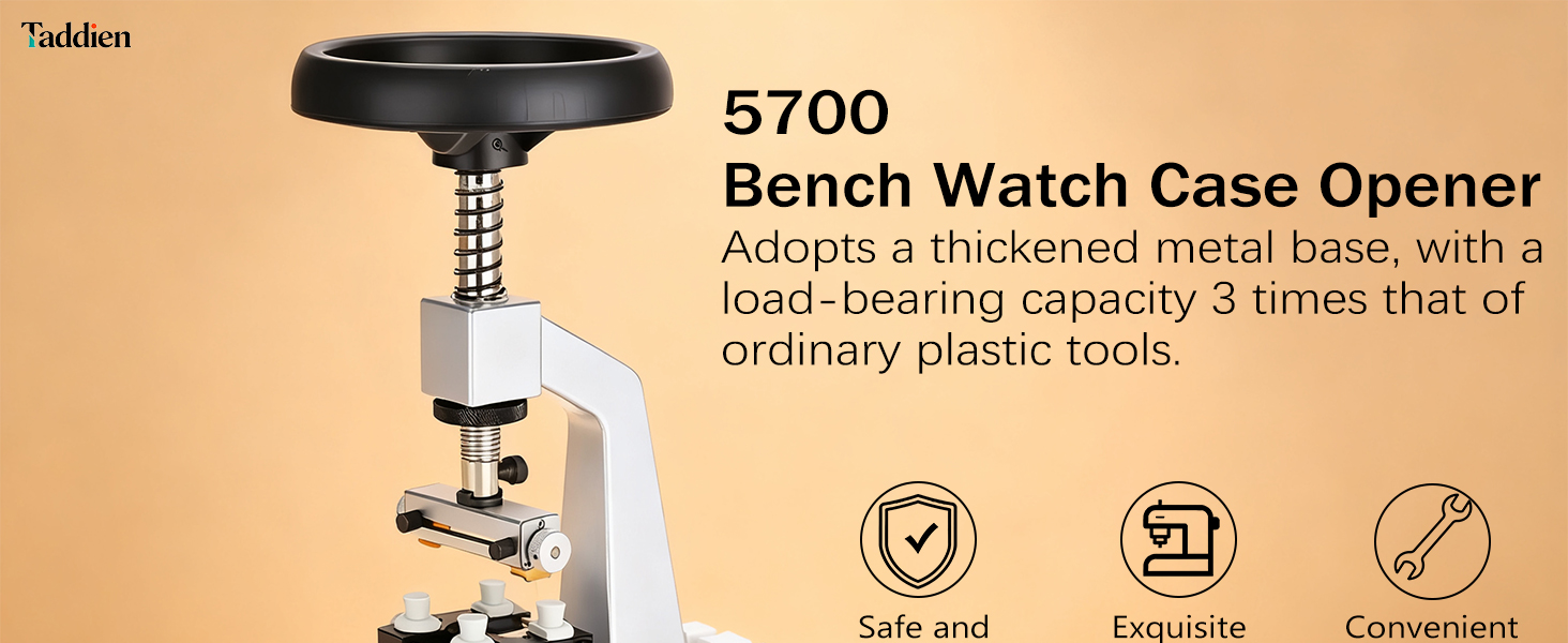 5700 Model Metal Base Trait: This 5700 Bench Watch Case Opener features a sturdy metal base, offering stable support during watch case opening, making it a reliable tool for handling various watch including Omega and Tudor.