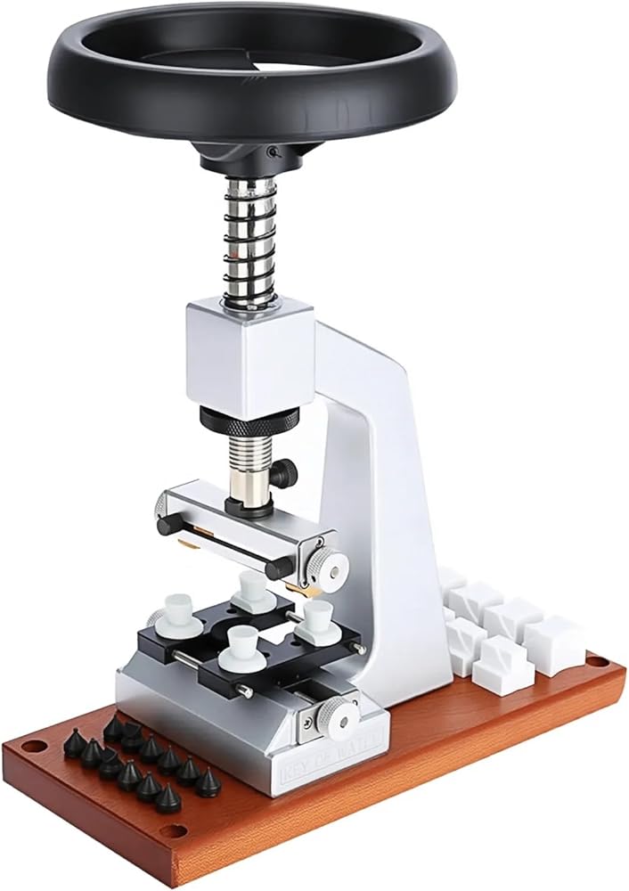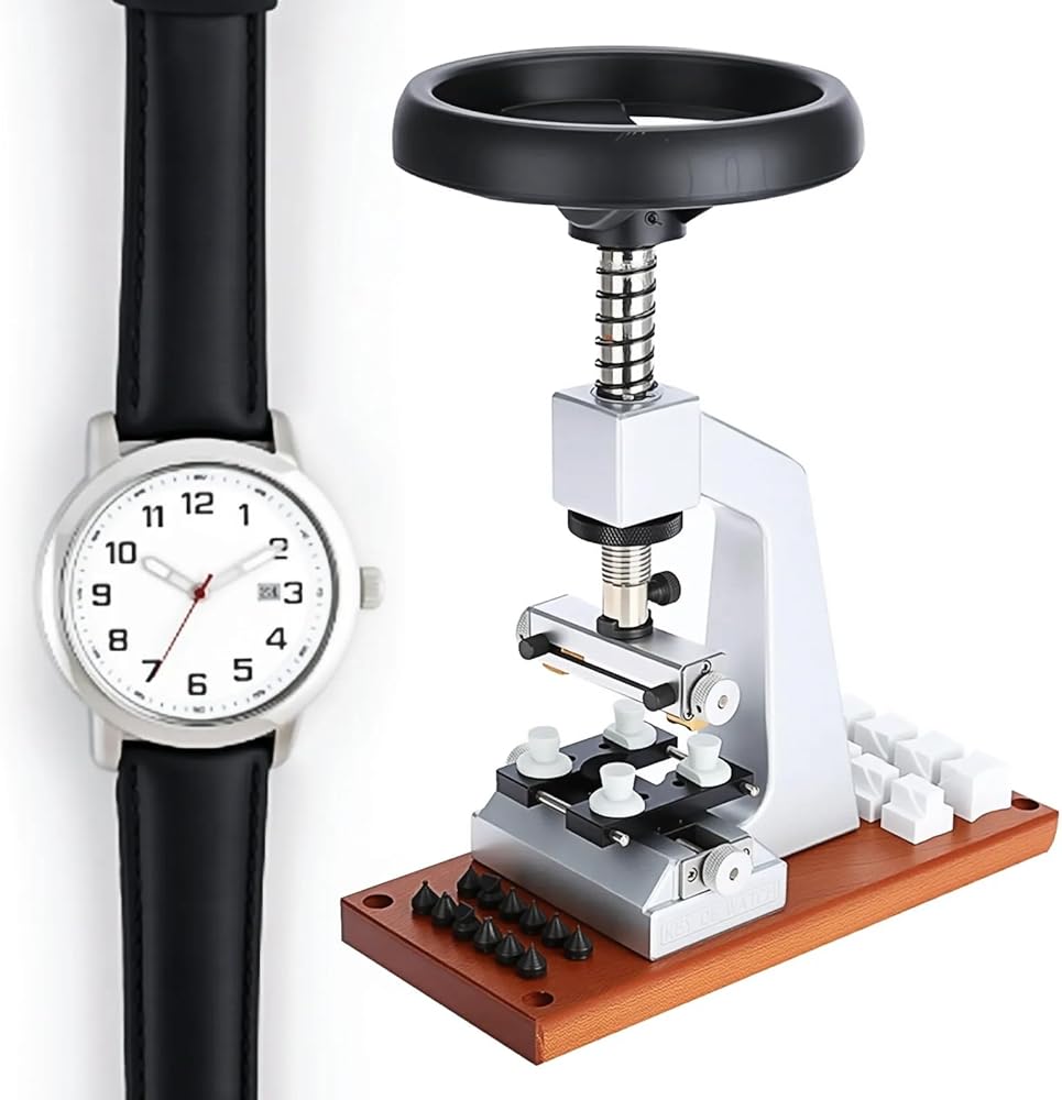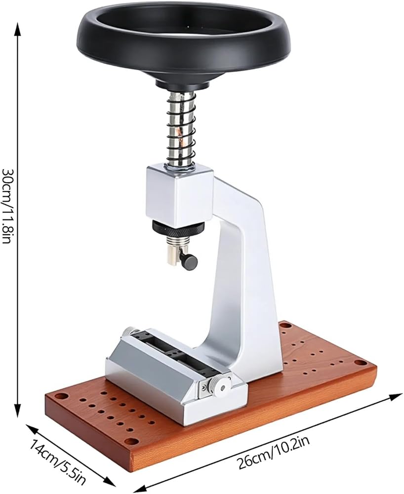 Bench-Mounted Design: Features a bench-friendly design with a metal base that secures the tool firmly, allowing for steady operation when opening watch cases, combining stability with practicality for efficient repair work.