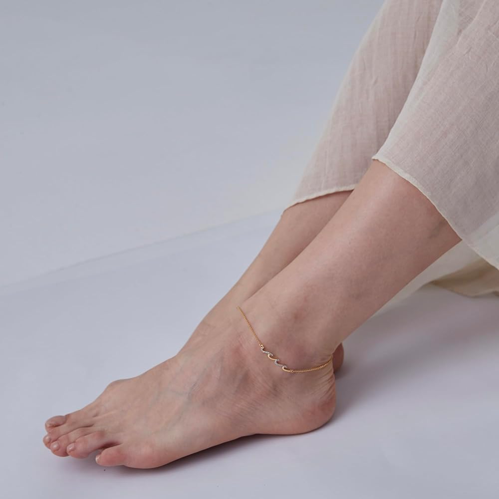 The gold anklet features an ocean wave design inlaid with multicolored cubic zirconia. The simple, minimalist style makes it perfect for the sea and beach wear. You can wear it alone or layer with other ankle bracelets for a stunning look