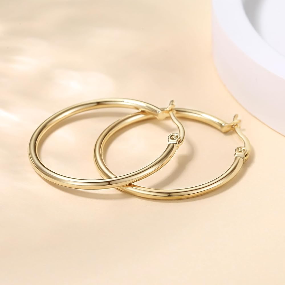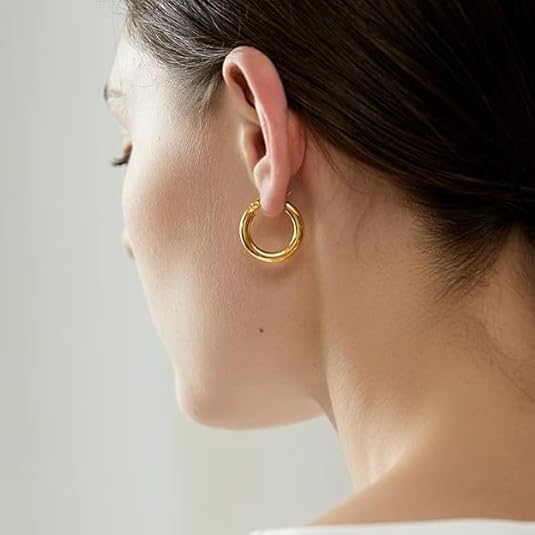 【نمط متعدد الاستخدامات】تتكيف هذه الأقراط الكبيرة المطلية بالذهب بسلاسة مع أي مناسبة، بدءًا من الإطلالات النهارية غير الرسمية وحتى المناسبات المسائية البراقة. تضيف الأطواق الصغيرة أناقة لا مثيل لها، بينما تضفي الأطواق الأكبر مظهرًا جريئًا، مما يضمن تعدد الاستخدامات في كل خزانة ملابس