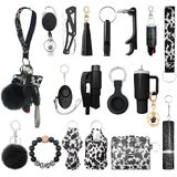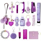 • مجموعة سلاسل المفاتيح تتضمن: حبل قصير، حزام معصم، بوم بوم، منبه شخصي، صافرة، حامل عصا الشفاه، فتاحة زجاجات، حامل بطاقة هوائية وغيرها من إكسسوارات سلاسل المفاتيح النسائية