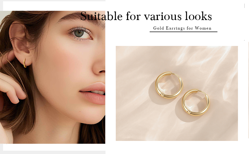 💫 [متعددة الاستخدامات] من ذيل الحصان الأنيق إلى الموجات الأشعث، هذه الأقراط الذهبية عيار 14 قيراط للسيدات تكمل كل تصفيفة شعر ومناسبة. يضيف توهجها الخالد لمسة ناعمة وراقية سواء تم ارتداؤها منفردة أو مكدسة، مما يجعلها إضافة لا بد منها لمجموعة الأقراط الذهبية للنساء.
