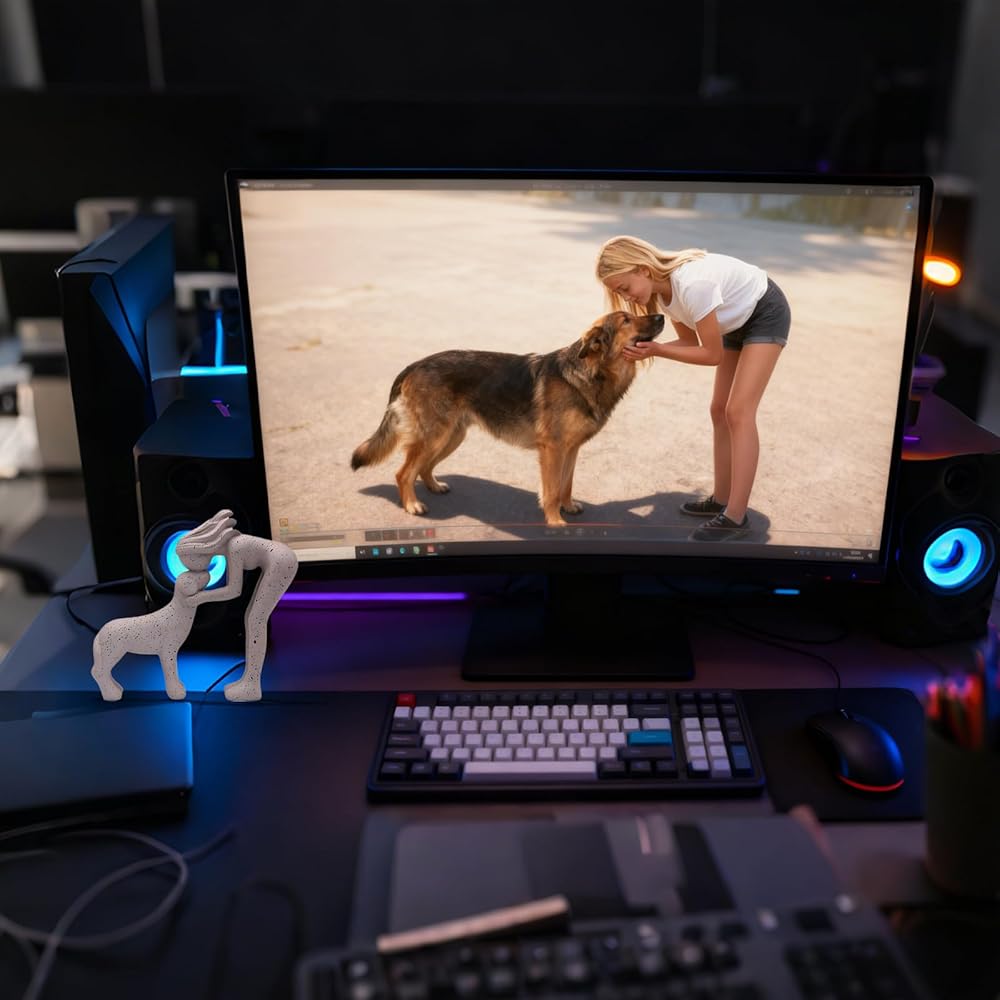 • يجسد تمثال الكلب الرقيق هذا لحظة من الرفقة الهادئة. تم تصميمه بتفاصيل نابضة بالحياة، وهو بمثابة تحية مؤثرة لمتعة الحيوانات الأليفة التي تجلبها، وهو مثالي لإضافة لمسة عاطفية إلى مساحتك الخاصة.