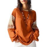 - المزايا: رقبة دائرية، كم طويل، طباعة زهور، مرقع، قمصان نسائية، فضفاضة، عصرية