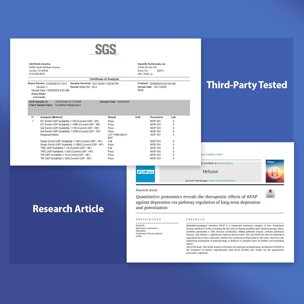 نقي وطبيعي: مكملات أكسيد المغنيسيوم الطبيعية والجليسينات للمساعدة على النوم خالية من الغلوتين، ولا تحتوي على مواد حافظة، ولا نكهات صناعية. كبسولات أكسيد المغنيسيوم والجليسينات Easymind مصنوعة في الولايات المتحدة الأمريكية، وتم اختبارها من قبل طرف ثالث من أجل النقاء والسلامة