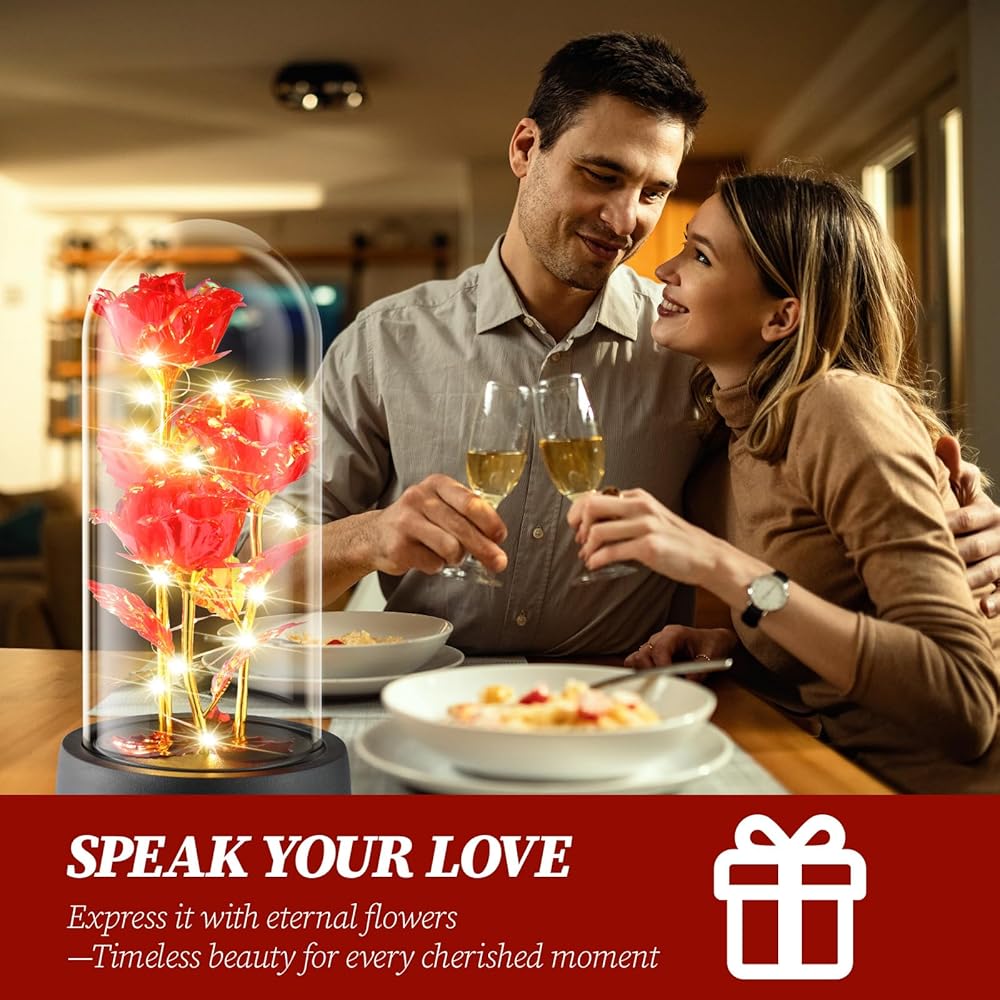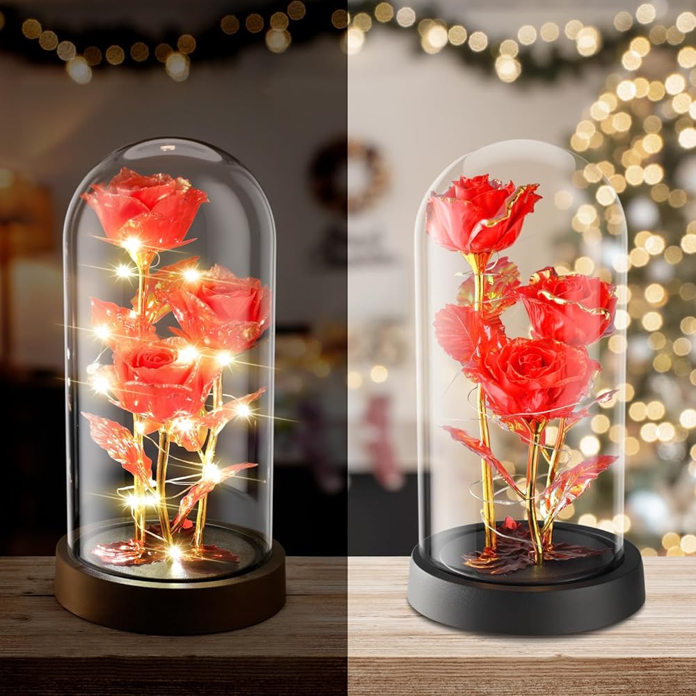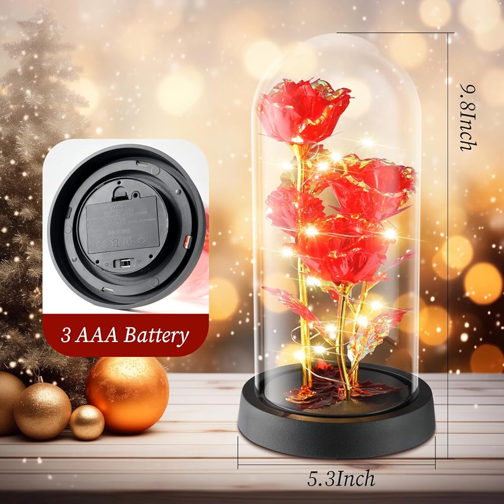 تصميم أنيق مضيء: يعمل بـ 3 بطاريات AAA (غير متضمنة)، مصابيح LED ملفوفة حول الورد، تضيء توهجًا دافئًا ساحرًا في الليل، ويضيف جوًا رومانسيًا وجميلاً وكديكور داخلي في عيد الميلاد والعطلات الأخرى