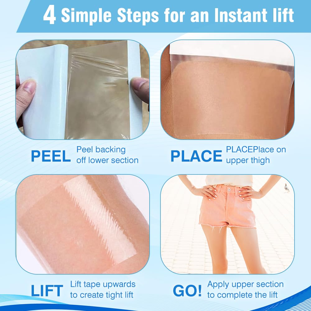 Whether you're dressing up for a special occasion or simply want everyday support, this thigh tape lifting invisible solution seamlessly blends with your skin tone and stays hidden under clothing. Use it on your thighs, arms, abdomen, or anywhere else that needs a lift!