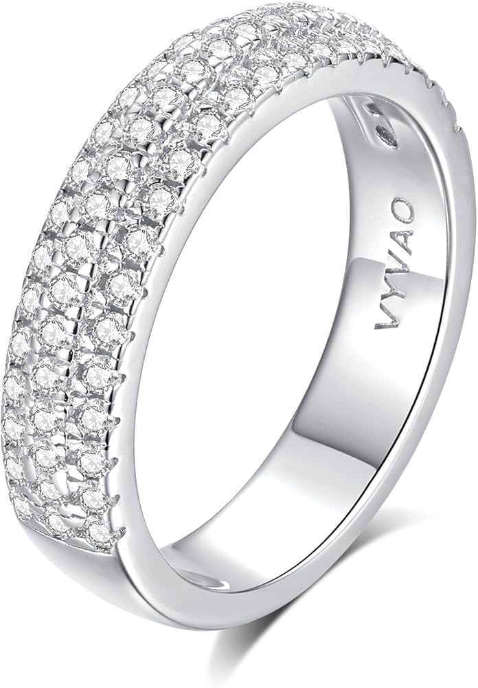 Moissanite Eternity Ring for Women Round Cut D Color VVS1 Moissanite Wedding Band, S925 Sterling Silver 18K White Gold Plated Promise Engagement Rings for Women