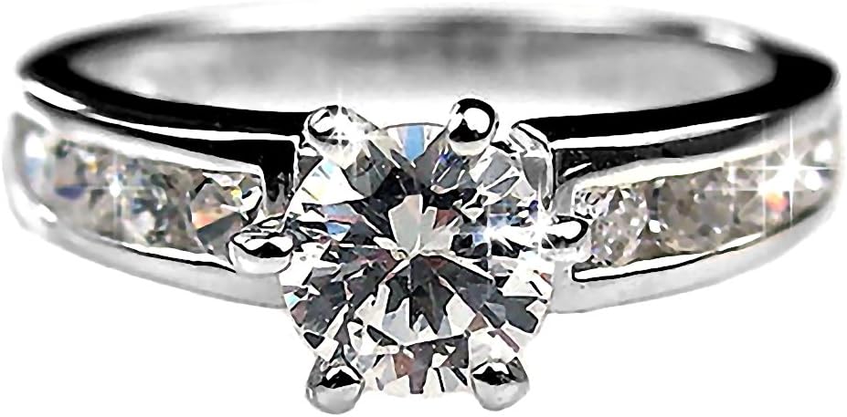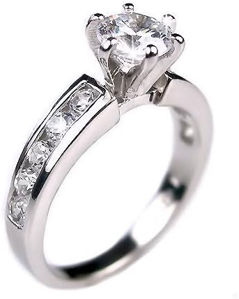 Delilah: An elegant blend of contemporary and traditional design elements make this engagement ring a beautiful statement of your love for years to come. Exquisitely crafted from fine 925 Sterling Silver, the Delilah features a Fiery, 0.75 carat Russian Ice on Fire CZ solitaire nestled in a 6 point gemstone setting. The beauty of this design is completed with the Russian Ice CZ's channel set into the band. Finished in Protective White Rhodium, you'll make an enduring statement of your love by presenting her with this gorgeous engagement ring!