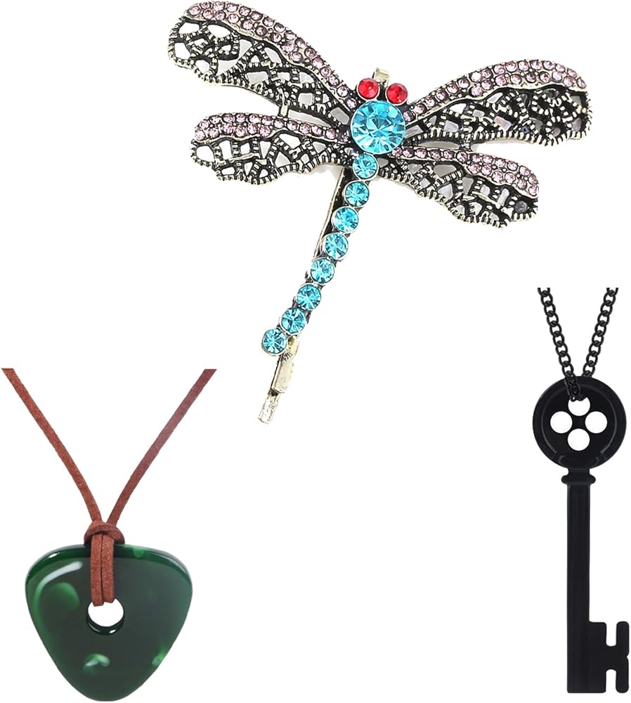 طقم إكسسوارات أزياء مكون من 3 قطع للحفلات التنكرية - قلادة على شكل حجر رؤية اليعسوب ومشبك شعر مفتاح أسود للأزياء التنكرية (ب)