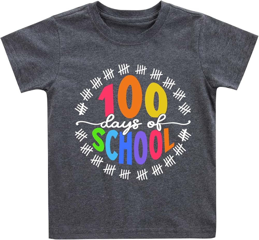قميص للأطفال الصغار الأولاد والبنات 100 يوم من المدرسة، تي شيرت مضحك للأطفال بمناسبة العودة إلى المدرسة، 2T in Kuwait