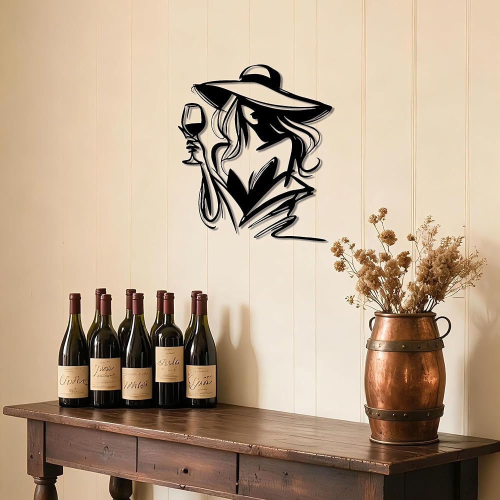 Transform any wall into a canvas of elegance and calm with our "Elegant Wine Lady" Metal Wall Art. This piece is more than mere decoration; it's an invitation to pause, relax, and savor the moment. Expertly crafted from high-quality metal, the artwork features a beautifully detailed silhouette of a woman in a poised pose, her wine glass adding a touch of timeless class. The deep matte black finish ensures it stands out with understated sophistication, creating a striking visual impact through the contrast of negative space and delicate forms.