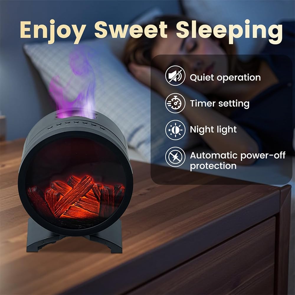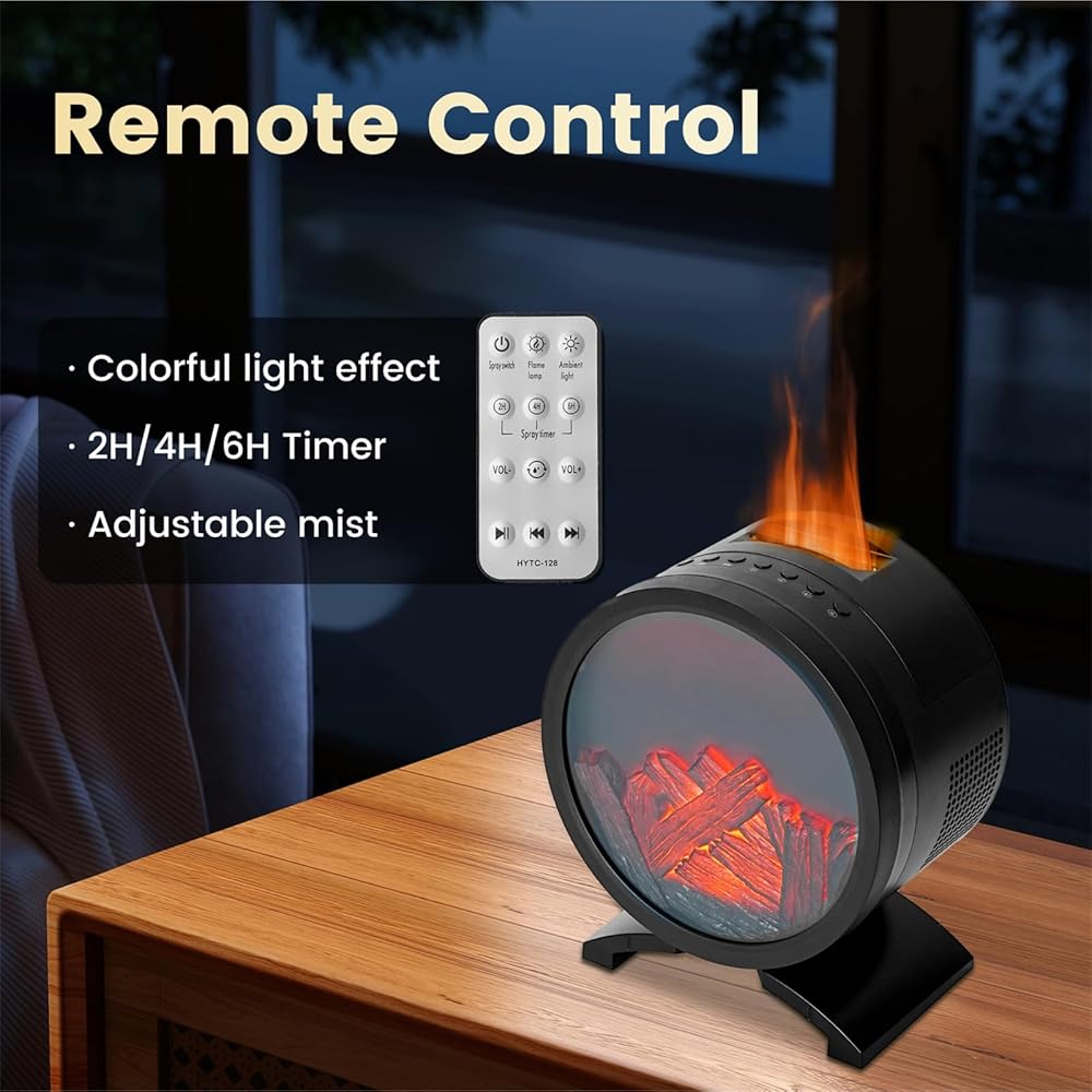 【جهاز تحكم عن بعد وتشغيل هادئ】يتضمن جهاز تحكم عن بعد سهل الاستخدام لتعديل جميع الميزات - الرذاذ/المدفأة/وضع اللهب. مصمم لأداء خالٍ من الضوضاء، يتيح لك ناشر الروائح العلاجية الاسترخاء أو النوم بشكل سليم طوال الليل دون إزعاج. (يمكن تشغيل/إيقاف وظائف رذاذ الترطيب/مصباح الموقد/مصباح اللهب بشكل مستقل.)