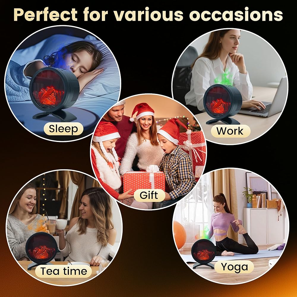 【إضاءة لهب بخمسة ألوان】استمتع بخمسة ألوان إضاءة لهب مفعمة بالحيوية (قوس قزح متدرج-برتقالي-أزرق-أخضر-أحمر) تمزج الرذاذ للحصول على تأثير ناري أصلي. يمكن أن يكون موزع هواء اللهب مثاليًا لغرف المعيشة أو غرف النوم أو المكاتب أو استوديوهات اليوغا أو تجمعات عيد الميلاد لتعزيز المزاج والأجواء.